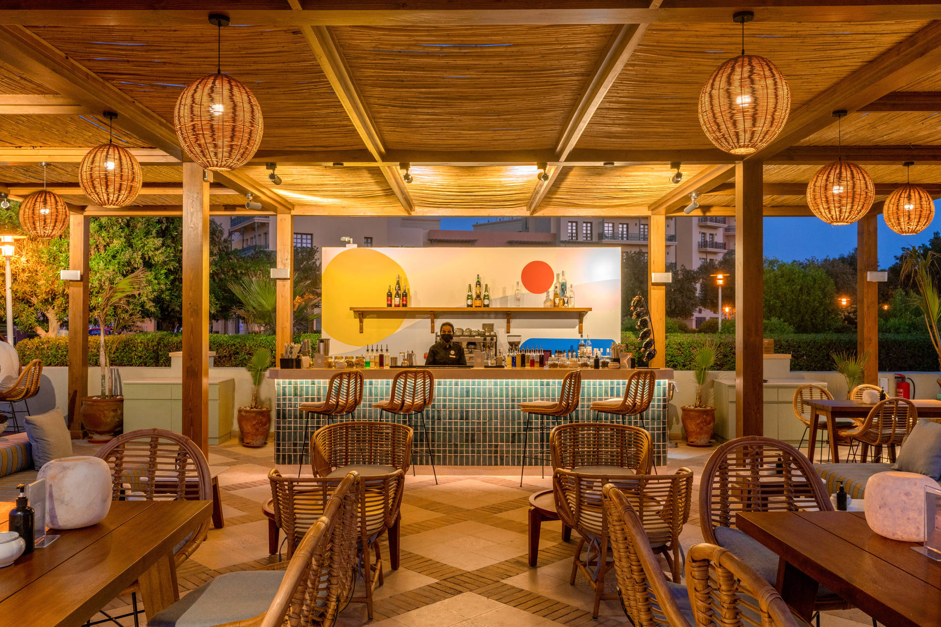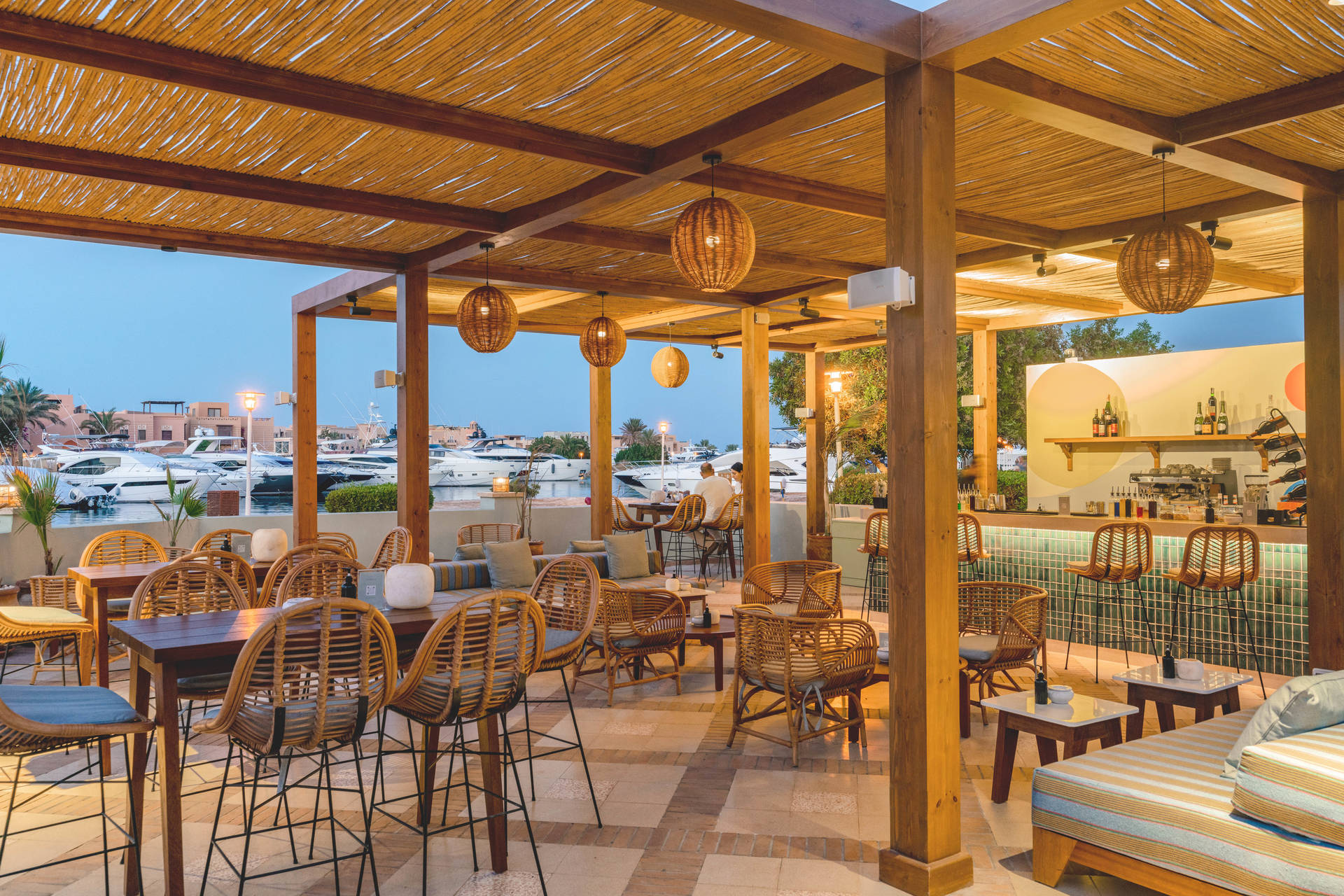 La terrasse en plein air de Tandoor abrite également un bar complet devenu un lieu de rencontre à Abu Tig Marina. Le bar artistique en carreaux de jade et d'aigue-marine sert le petit-déjeuner aux clients de l'hôtel, mais il est ouvert toute la journée et la soirée pour boissons et encas. Des cafés signatures aux petites assiettes et entrées, c'est l'endroit idéal pour se prélasser à l'ombre du kiosque en bambou. Le soir venu, détendez-vous avec des cocktails signatures et des rythmes éclectiques de jazz et chill-out. Le bar est ouvert de 7h30 à 00h. La partie snack est quant à elle ouverte de 10h30 à 12h.