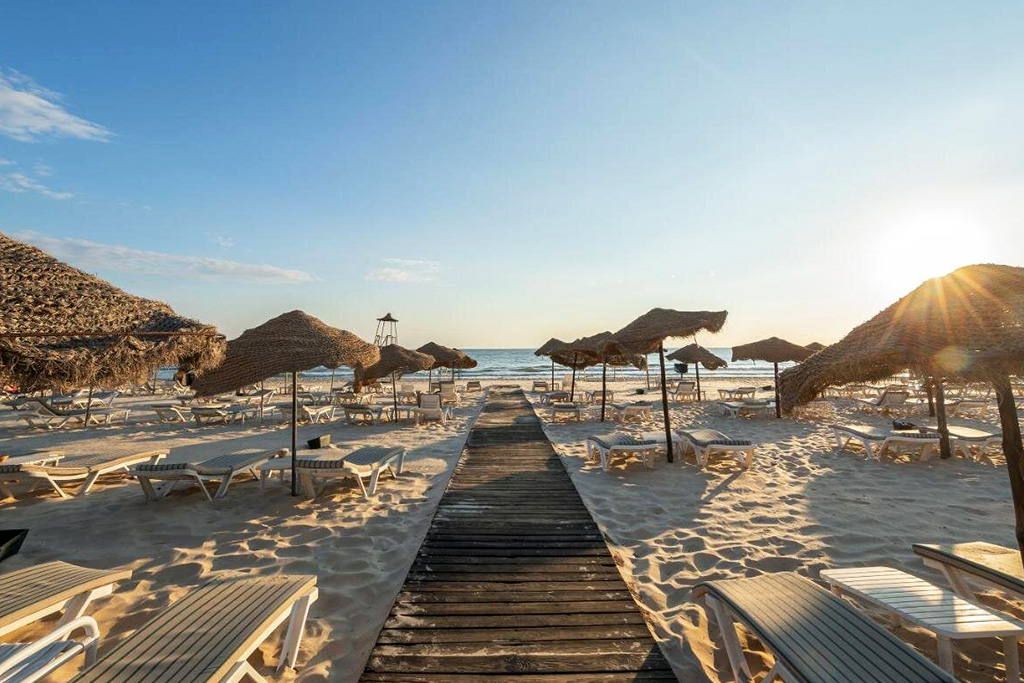 Bienvenue au Marhaba Beach 4* ! Ce « resort », pieds dans l’eau, vous invite au confort, à la détente et au plaisir. Installé sur une plage privée de sable fin, à deux pas de la médina de Sousse, l’établissement bénéficie d’un cadre exceptionnel entre mer turquoise, palmiers et jardins luxuriants. Les chambres au design élégant arabo-mauresque, sont toutes climatisées, dotées de balcon ou terrasse et garantissent un confort moderne au cœur d’un cadre chaleureux et raffiné. La formule « Tout compris » vous entraine dans une valse gustative aux saveurs et aux senteurs qui vous séduiront, tandis que les différents bars vous proposeront un moment de détente pour siroter un cocktail tout en partageant vos expériences…. Côté détente et relaxation, 3 piscines dont une pour enfants et un espace bien-être sont à votre disposition pour profiter au maximum de votre séjour. Les plus sportifs participeront aux nombreuses activités en journée et en soirée. Idéalement situé, vous pourrez facilement allier découvertes et farniente afin de vous imprégner de cette magnifique région.