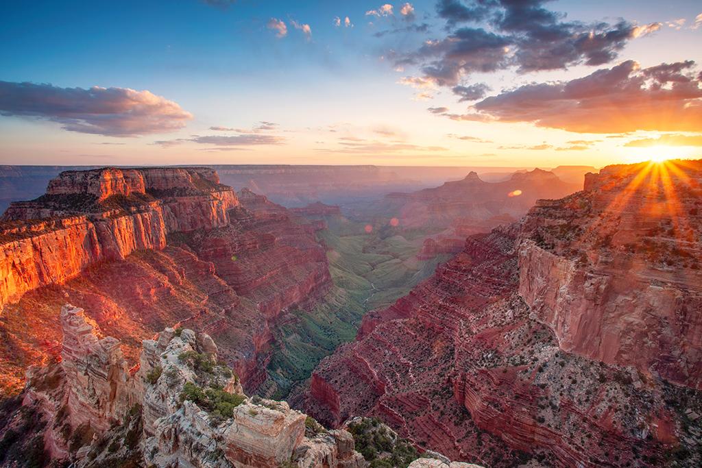 Petit-déjeuner et départ pour le Grand Canyon via Kingman. Stop à Seligman qui conserve toute la saveur de la vieille Route 66 et la Kaibab Forest. Déjeuner libre. L’après-midi, découverte du Grand Canyon, extraordinaire entaille géante de renommée mondiale, s’étendant sur plus de 400 km et descendant à une profondeur de 2 000 m. Les couches sédimentaires multicolores exposées prennent des nuances variables suivant l'angle du soleil et les jeux d'ombre changeant au fil du jour. Vous effectuerez plusieurs arrêts qui offrent des vues splendides sur le Colorado et le Painted Desert. Poursuite vers Flagstaff pour la fin de journée. Dîner et nuit à l’hôtel.