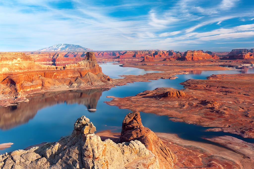 Petit-déjeuner et route vers Monument Valley. Vous vous arrêterez au Visitors Center, situé à l’entrée du parc, afin de profiter de sa terrasse et de la magnifique vue sur les Mittens & Merrick Butte. Déjeuner et route vers le lac Powell pour un arrêt au barrage. Vous découvrirez les eaux bleues de ce gigantesque lac artificiel entouré de falaises colorées.