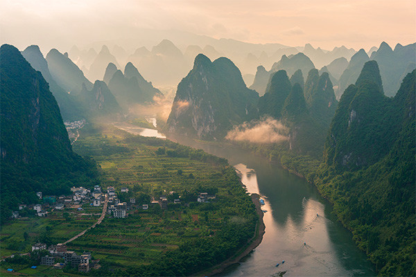 Départ pour rejoindre l'embarcadère. Montez à bord d'un bateau pour descendre la rivière Li. Croisière à la découverte des paysans au travail dans les rizières, des pêcheurs à l'épervier. Déjeuner. Arrivée à Yangshuo, surnommé « le petit St-Tropez ». Flânerie dans les ruelles pittoresques du village.