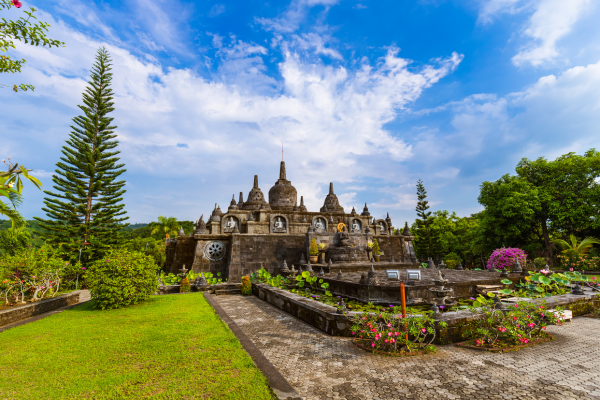 Petit-déjeuner. Départ pour la visite du Monastère Bouddhiste Brahma Vihara construit en 1970 qui surplombe la côte nord de l'île. Arrêt aux sources chaudes de Banjar. Temps libre pour un moment de détente dans les sources chaudes. Continuation vers Pupuan pour la visite du Monastère Bouddhiste de Vihara Dharma Giri qui abrite une superbe statue de Buddha couché. Route vers Belimbing. Déjeuner au restaurant. L’après-midi, balade d’environ 1 heure dans les rizières et plantations d’épices autour du Cempaka. Départ pour la visite au coucher du soleil du temple de Tanah Lot, le plus célèbre temple de Bali. Route vers le village d’Umabian. Dîner libre. Nuit à l’hôtel.