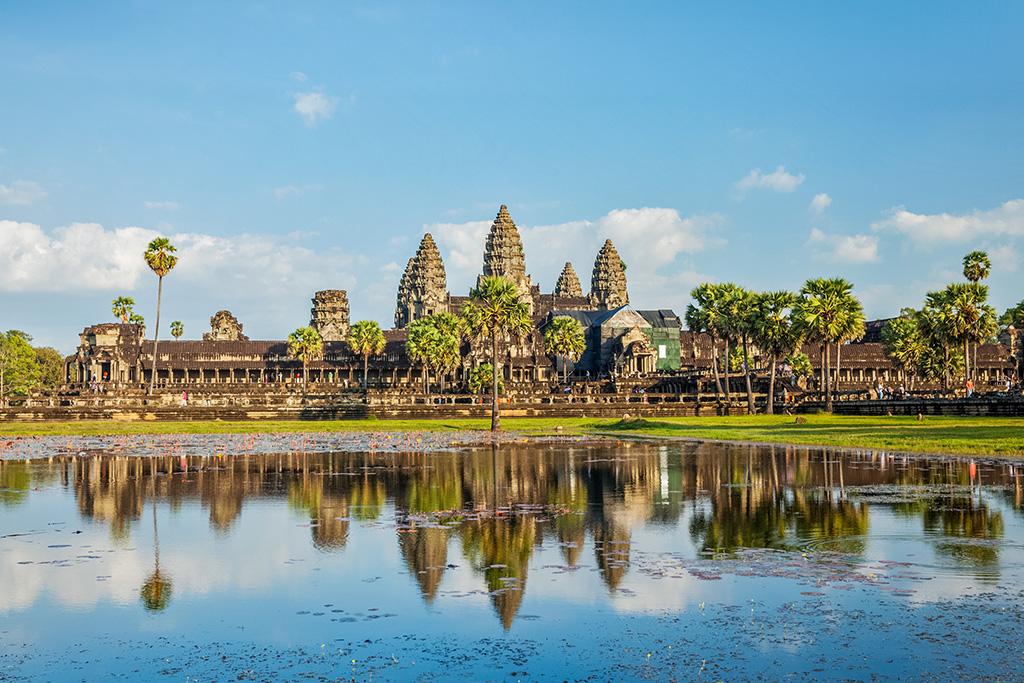 Petit-déjeuner. Départ dans la matinée pour rejoindre l’un des trésors les plus raffinés du site d’Angkor : Banteay Srei, la « Citadelle des Femmes », située à 35 km de la ville. Ce joyau de grès rose, réputé pour la finesse exceptionnelle de ses sculptures, est un véritable chef-d’œuvre de l’art khmer. Au retour, arrêt pour la visite du temple de Bakong, l’un des plus anciens temples-montagnes d’Angkor, appartenant au groupe de Roluos, berceau de la civilisation khmère. Déjeuner dans un restaurant local. L’après-midi est consacrée à l’exploration du mythique Angkor Wat, temple-montagne monumental érigé au XII? siècle par le roi Suryavarman II. Ce sanctuaire, sommet de l’architecture classique khmère, impressionne par son harmonie, la richesse de ses bas-reliefs et la puissance spirituelle qui s’en dégage. Si un seul monument devait représenter toute la splendeur d’Angkor, ce serait celui-ci. En fin de journée, ascension de la colline de Bakeng pour admirer le coucher de soleil sur les temples, avec une vue spectaculaire sur Angkor Wat baigné de lumière dorée. La soirée se conclut par un dîner-spectacle de danses Apsara khmères, dans l’atmosphère envoûtante d’un restaurant traditionnel. Nuit à l’hôtel Somadevi Angkor 5* (ou similaire).