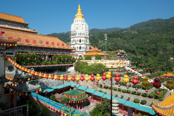 Ensuite, départ pour Georgetown, capitale de l'État de Penang, fondée en 1786 par le capitaine Francis Light. Cette ville, riche en héritage colonial, abrite un des plus grands ensembles d'édifices coloniaux d'Asie du Sud-Est. L'après-midi inclut la visite du temple thaïlandais avec son Bouddha couché, du temple birman, et du Khoo Kongsi, le plus grand temple de clan de l’île. Vous passerez également par Little India, Chinatown, et la célèbre Street of Harmony, où se côtoient église, temples et mosquée, illustrant la diversité culturelle de Penang.