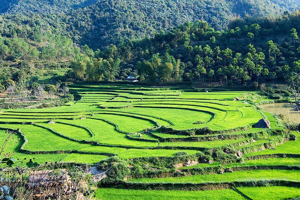 Petit-déjeuner. Départ pour visiter le village des forgerons avant d’arriver aux fameuses chutes de Ban Gioc, qui délimitent la frontière avec la Chine. Déjeuner au restaurant local. Dans l’après-midi, route vers Ba Be. Dîner et nuit chez l’habitant du village de Pac Ngo, où vivent les Tay.