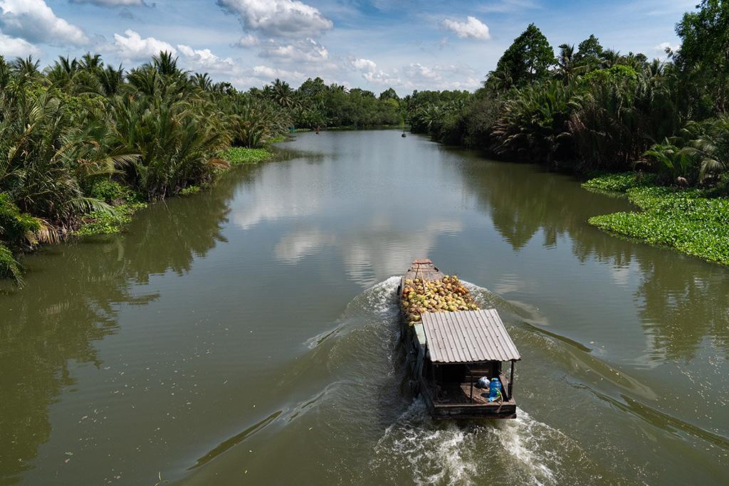 Visite du delta du Mékong. Vous observerez la couleur jaune de l’eau due à la terre qui fertilise tout au long de l’année, les champs et les riches jardins fruitiers du delta. Les immenses rivières et les rizières sont parsemées d’étangs de lotus. Sur la route, arrêt au temple de la religion Caodaïste. Arrivée à My Tho : embarquement à bord d’un bateau local puis navigation vers l’île de Phoenix. Pendant votre promenade, vous goûterez au jus de noix de coco de la région.