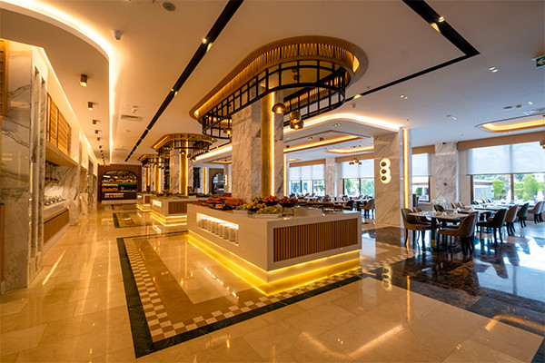 - Snacks : de 12h à 16h au snack restaurant (pâtes, pizzas, hamburgers, salades), de 10h à 17h30 au Beach bar (gaufres, glaces, fruits de saison), pâtisserie ouverte de 10h à 18h, coin Gözleme ouvert de 11h à 16h.