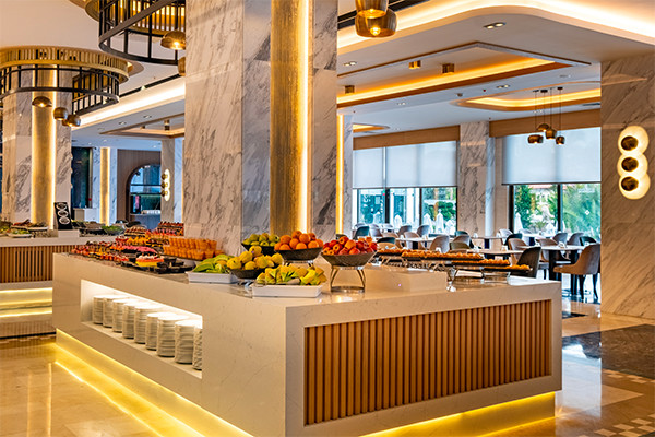Le restaurant principal de l'hôtel vous propose une cuisine locale et internationale servie sous forme de buffet et vous accueille pour :