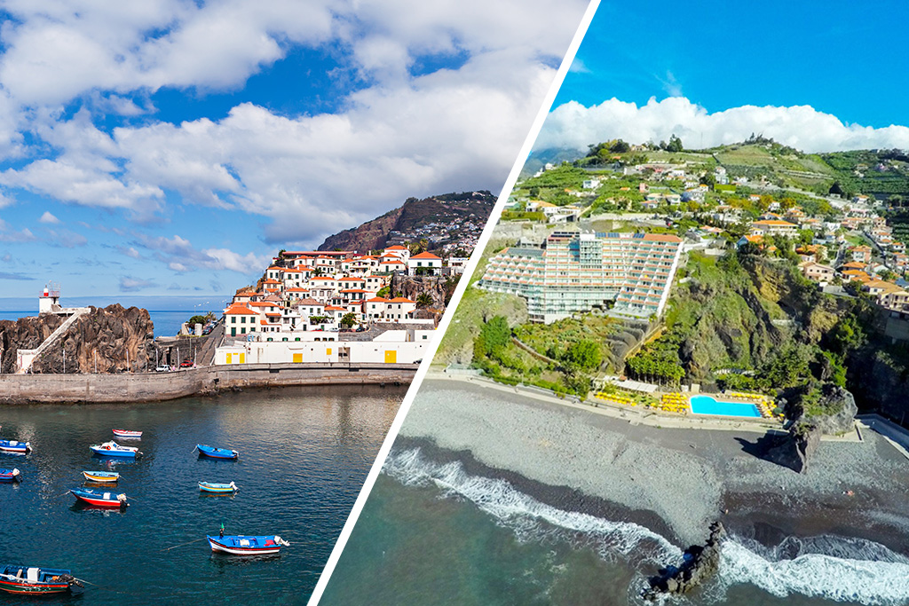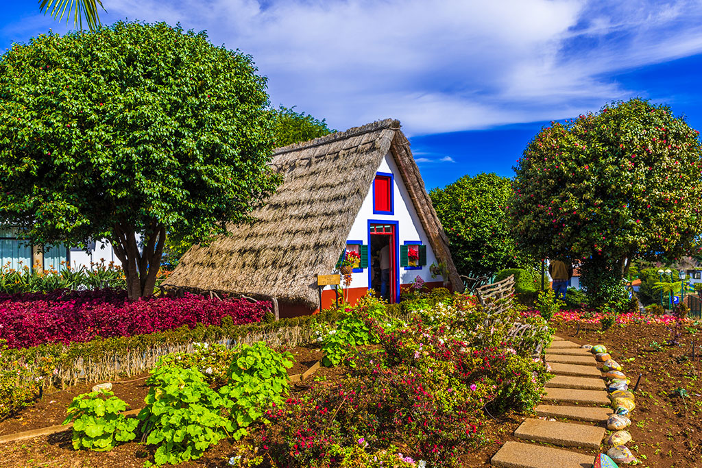 - Jour 6 – Visite de la côte Est: après le petit déjeuner, départ en direction du col de Poiso (1412 m) pour rejoindre le Pico do Arieiro, le deuxième plus haut sommet de l’île (1811m) considéré comme l’un des plus beaux endroits à Madère. Descente vers le nord par Ribeiro Frio, pour y observer de nombreuses plantes endémiques et bassins de truites arc-en-ciel. Continuation dans la « Laurissilva » déclarée Patrimoine mondial de la biosphère par l’Unesco en 1999, puis vers Santana, village connu pour ses maisons typiques aux toits de chaume. Déjeuner libre. Continuation vers Faial et le petit village de Porto da Cruz, l'un des plus charmants de l'île. Beaucoup y pratiquent le surf ou s'adonnent aux joies de la baignade ; d'autres profitent de la douceur de vie et de la beauté des paysages avoisinants. Puis, arrêts au Belvédère de Portela pour découvrir la sublime vue sur le rocher de l’aigle ainsi qu'au Belvédère du Facho sur les hauteurs de Machico. Sur le retour vers Funchal, vous passerez sous la piste de l'aéroport construite sur plus de 180 pilotis. Incontestablement une des œuvres architecturales et d'ingénierie qui marque toutes les personnes qui visitent Madère.