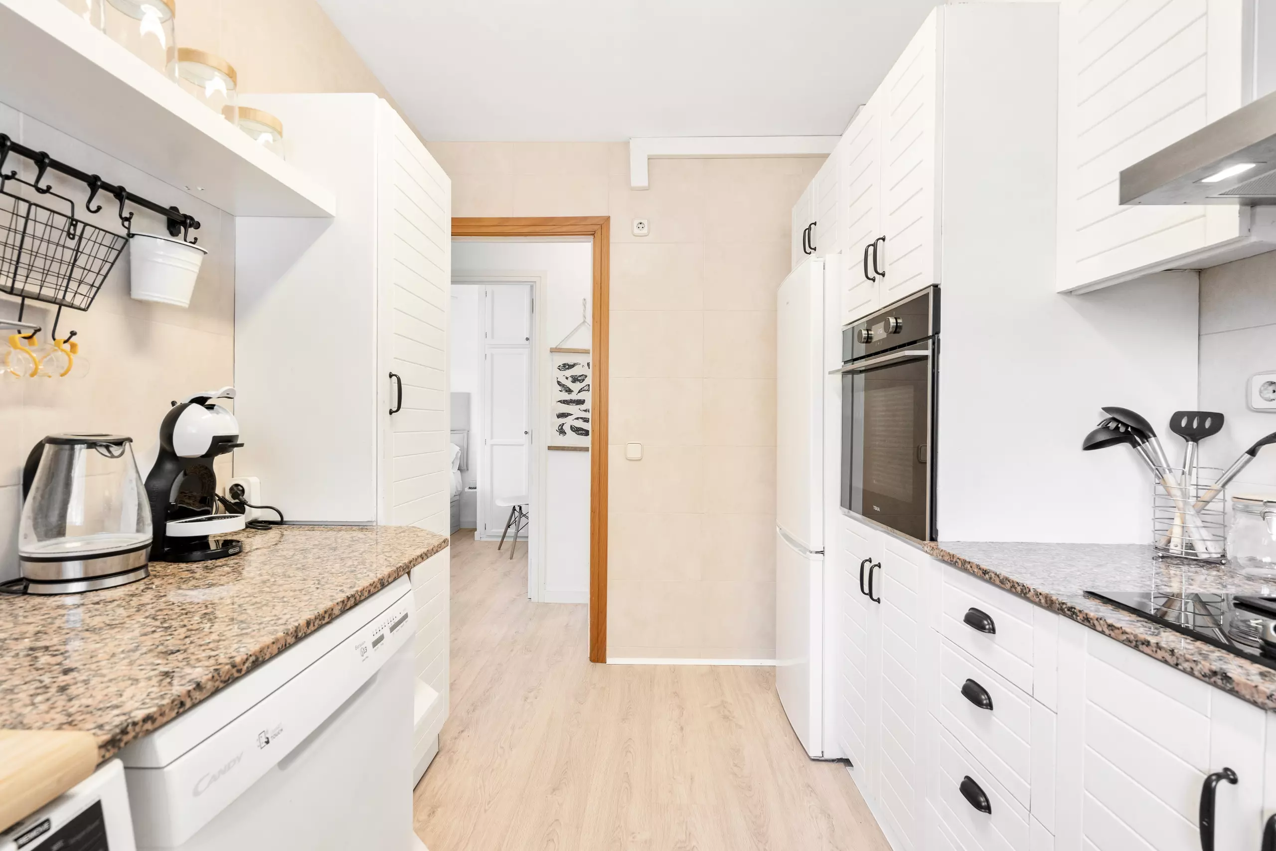 Cet appartement confortable de 50 m² peut accueillir 4 à 6 personnes et est équipé de tous les équipements nécessaires pour des vacances parfaites. Dans la cuisine entièrement équipée, les invités trouveront tout ce dont ils ont besoin pour préparer leurs plats préférés, comme un four, une plaque vitrocéramique, un micro-ondes, un réfrigérateur, une bouilloire, une cafetière et plus encore. Il dispose également d'un lave-vaisselle et d'un lave-linge pour plus de commodité.