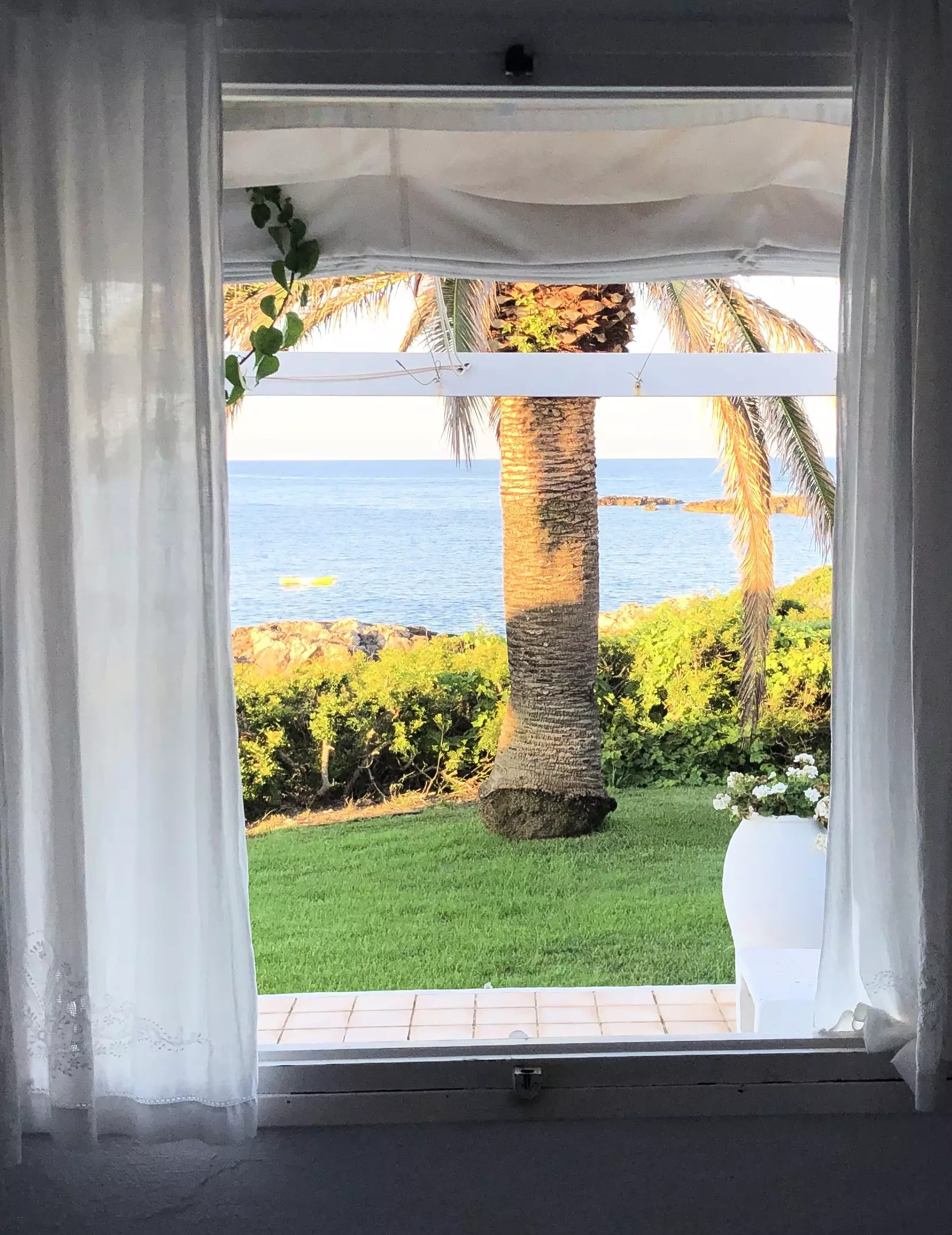 Le jardin a de l'herbe jusqu'aux rochers qui donnent sur la mer, où il est possible d'accéder aux eaux cristallines par quelques escaliers. Il y a deux grandes terrasses couvertes, avec un canapé, des chaises et une table pour manger ou se détendre. Depuis elles, on peut profiter de magnifiques vues sur la mer ouverte.