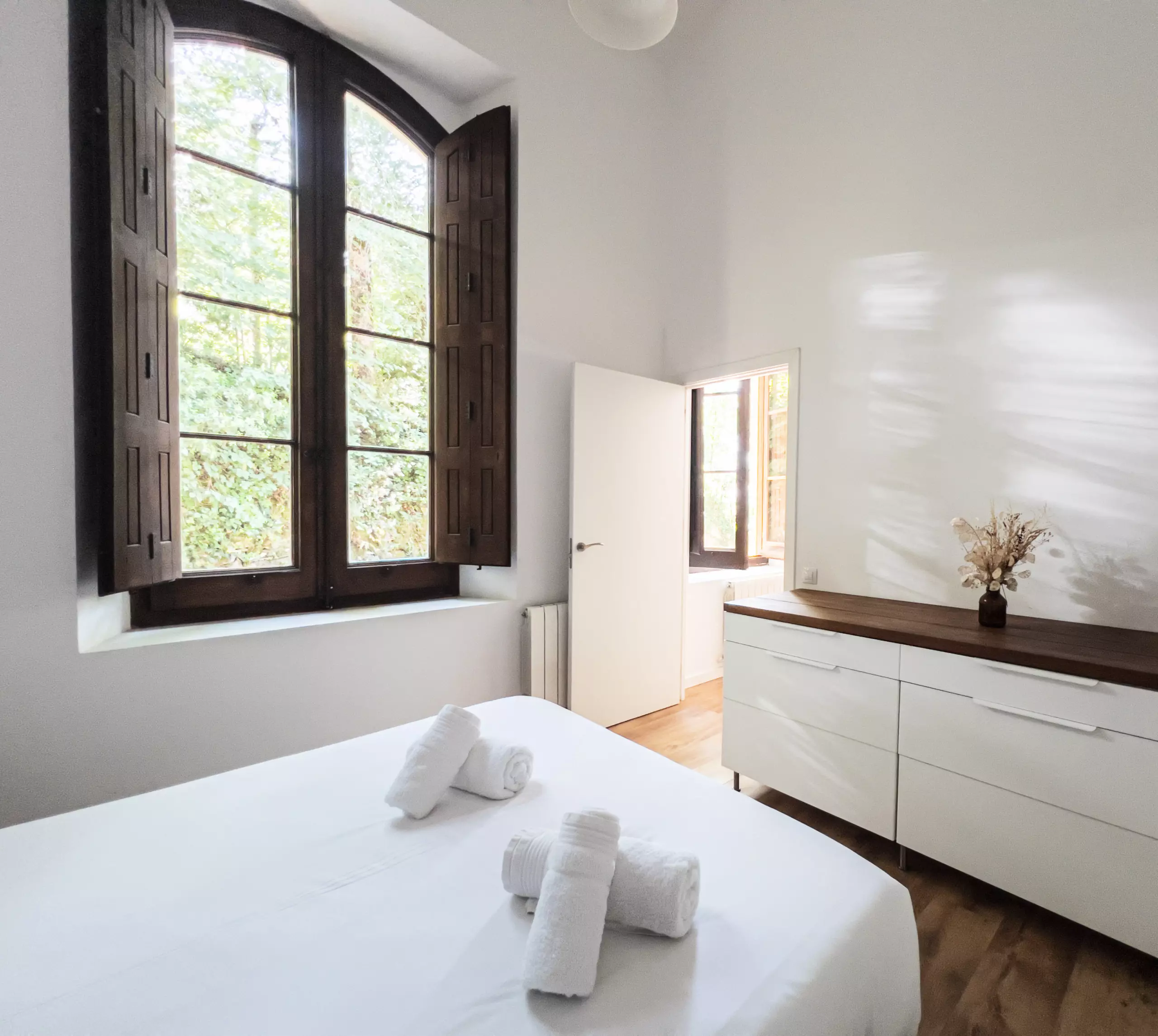 Le logement des invités est aménagé simplement mais avec une ambiance chaleureuse, avec un souci de confort et de matériaux naturels. Il est situé à 930 mètres d'altitude, au milieu des forêts des Guilleries, dans la province de Gérone. Depuis le terrain, vous avez une vue sur les montagnes et une totale intimité.