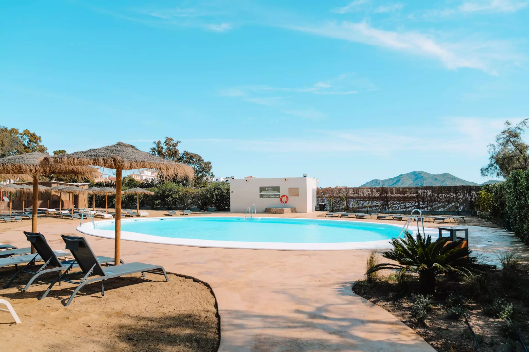 TAIGA ALMERIA PLAYA avec toutes ses installations rénovées et de nouveaux hébergements en 2024. Situé sur la Costa de Almería, face à la plage de Quitapellejos, à côté de Palomares et Vera Playa. Une merveilleuse enclave pour profiter de vacances à la plage et dans la nature toute l'année. Le camping dispose d'une piscine, d'un restaurant et d'une supérette. Prestation d'animations. Hébergements disponibles : emplacements, bungalows, mobil-homes et tentes glamping de la plus haute qualité. Situé à 90 kilomètres de l'aéroport international d'Almería et à 100 kilomètres de l'aéroport international de Murcie.