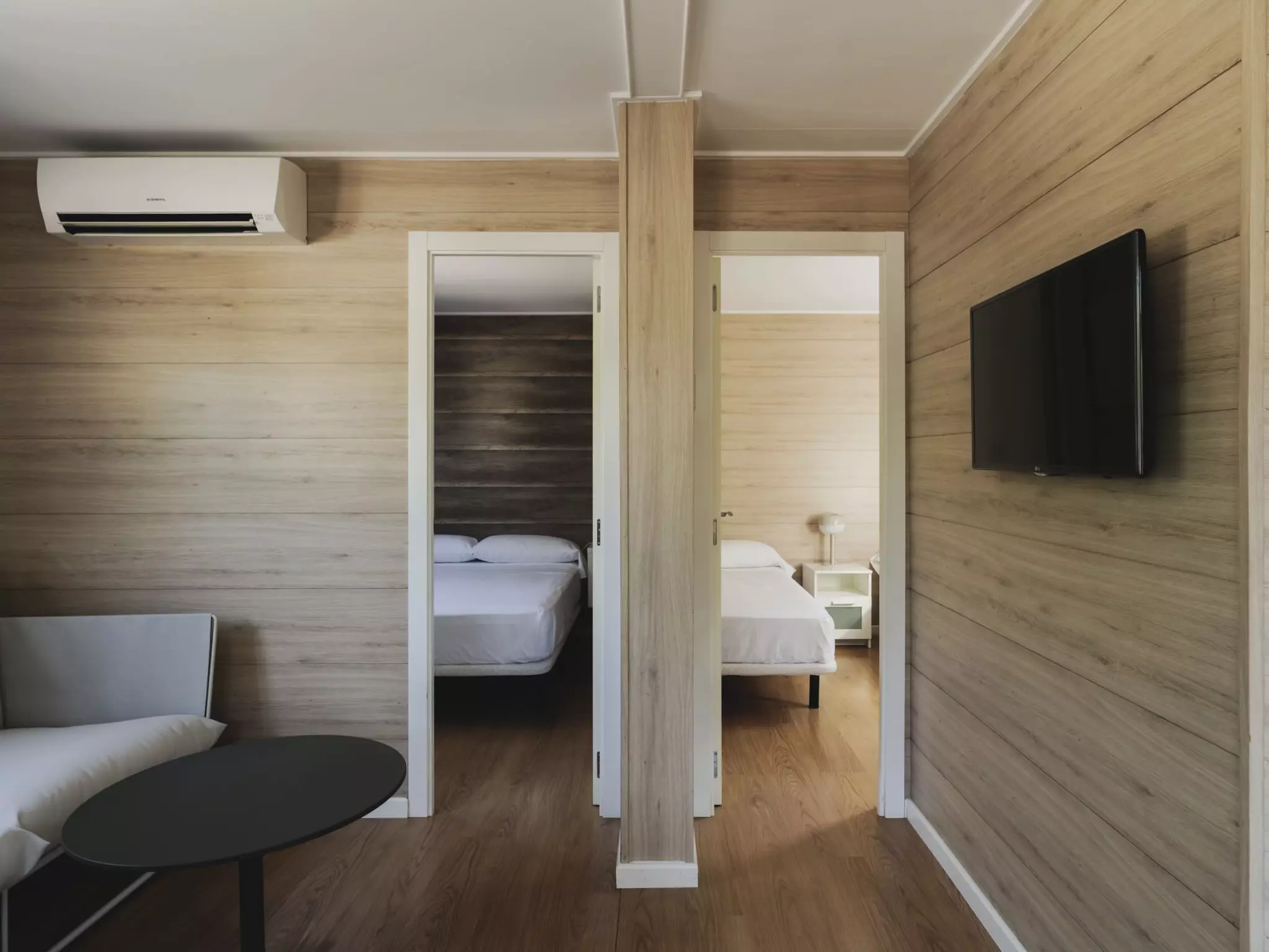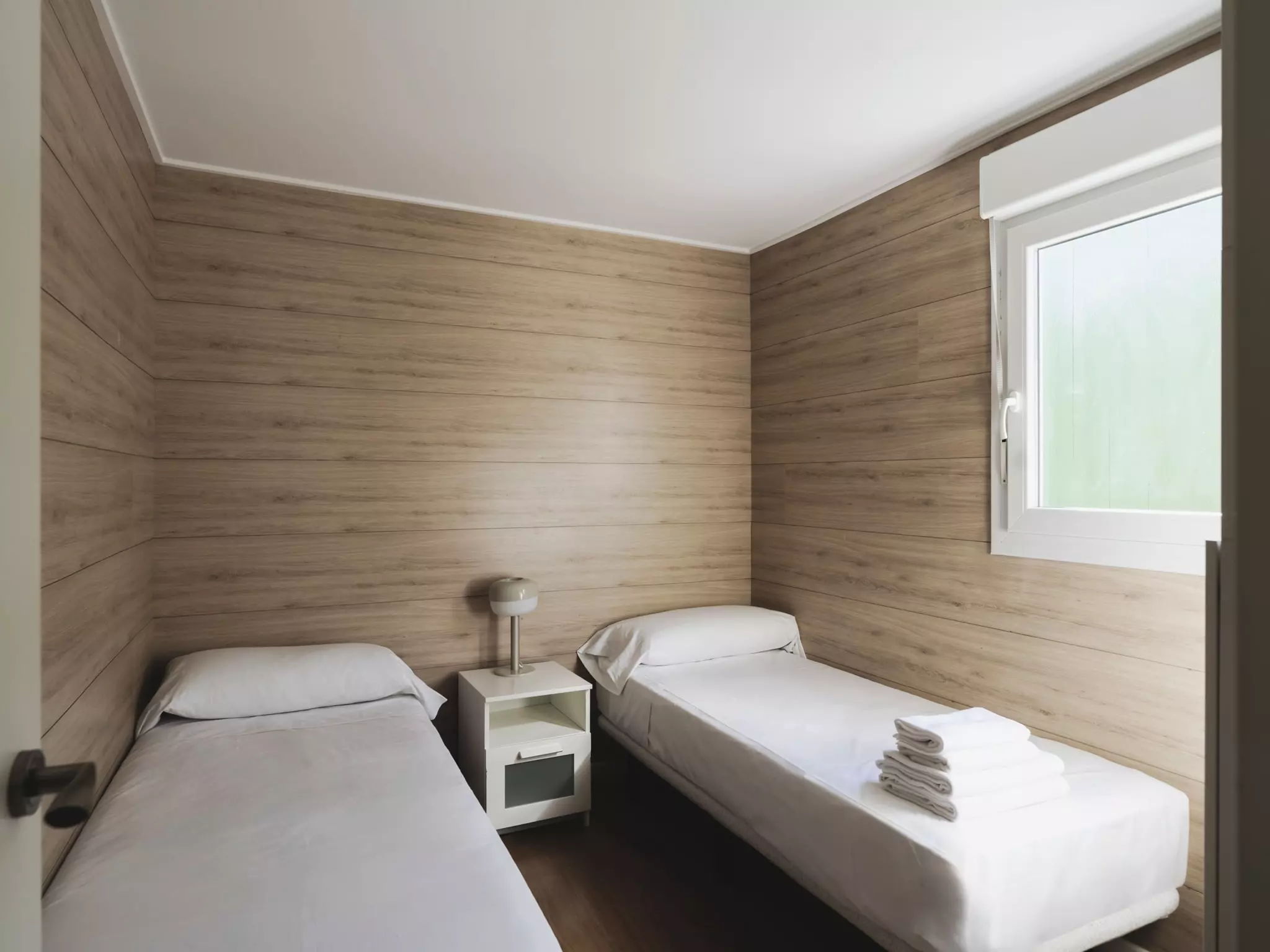 Découvrez notre bungalow chaleureux pour quatre personnes, entouré de nature et conçu pour un confort optimal. Il comprend deux chambres (une double et une avec deux lits simples), une cuisine entièrement équipée, chauffage, climatisation, salle de bain privée avec produits d'accueil et Wi-Fi gratuit. Profitez de soirées en famille sur la terrasse privée avec éclairage d'ambiance ou partagez des repas baignés de lumière naturelle. Parking inclus. Les animaux sont admis avec supplément. Parfait pour se déconnecter et créer des souvenirs en famille.