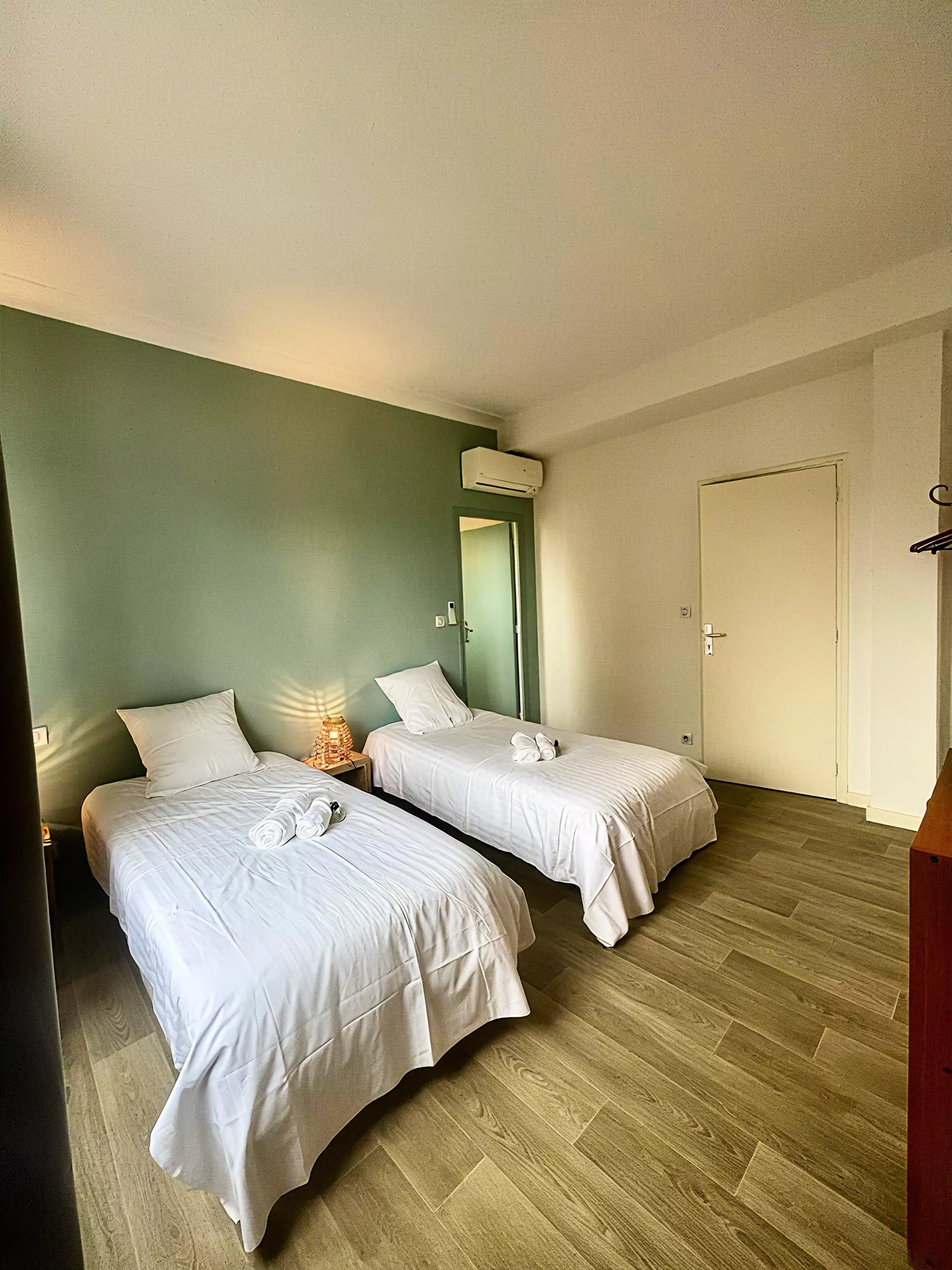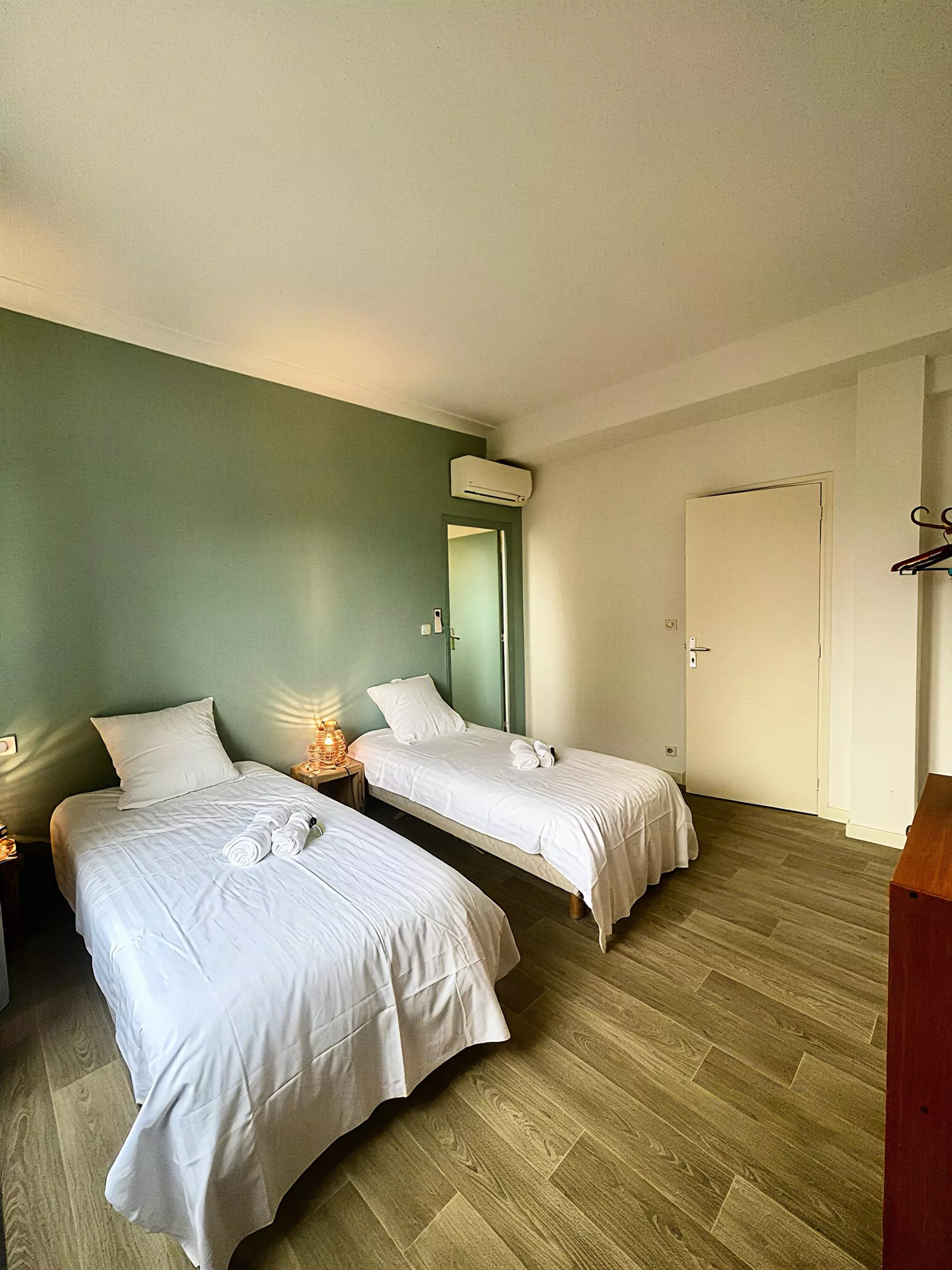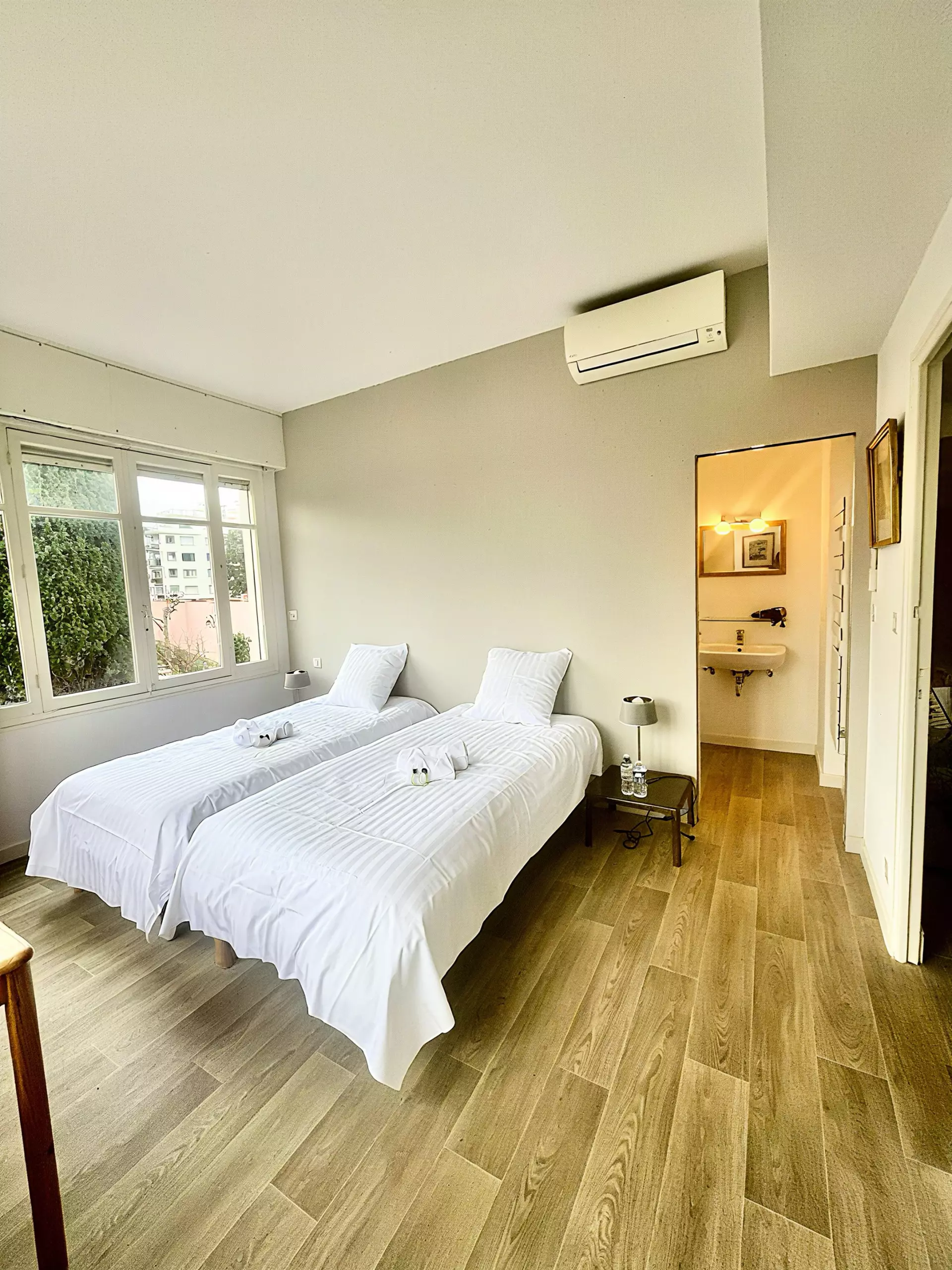 Une troisième chambre avec deux lits jumeaux et sa salle de douche.