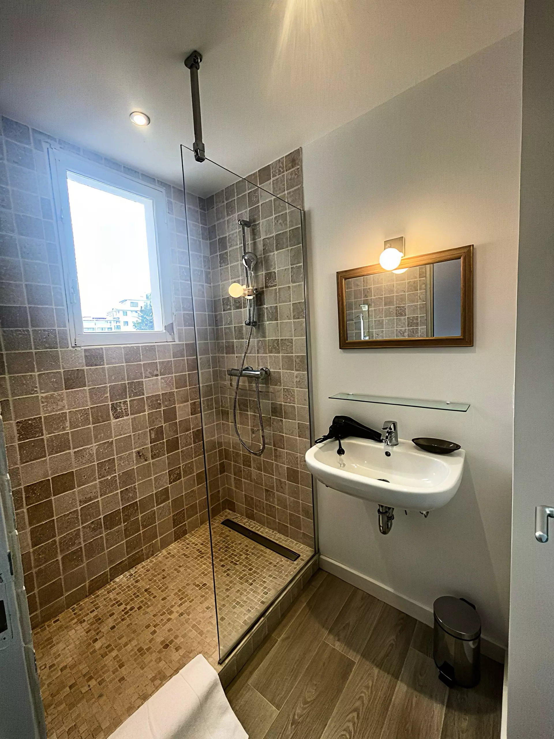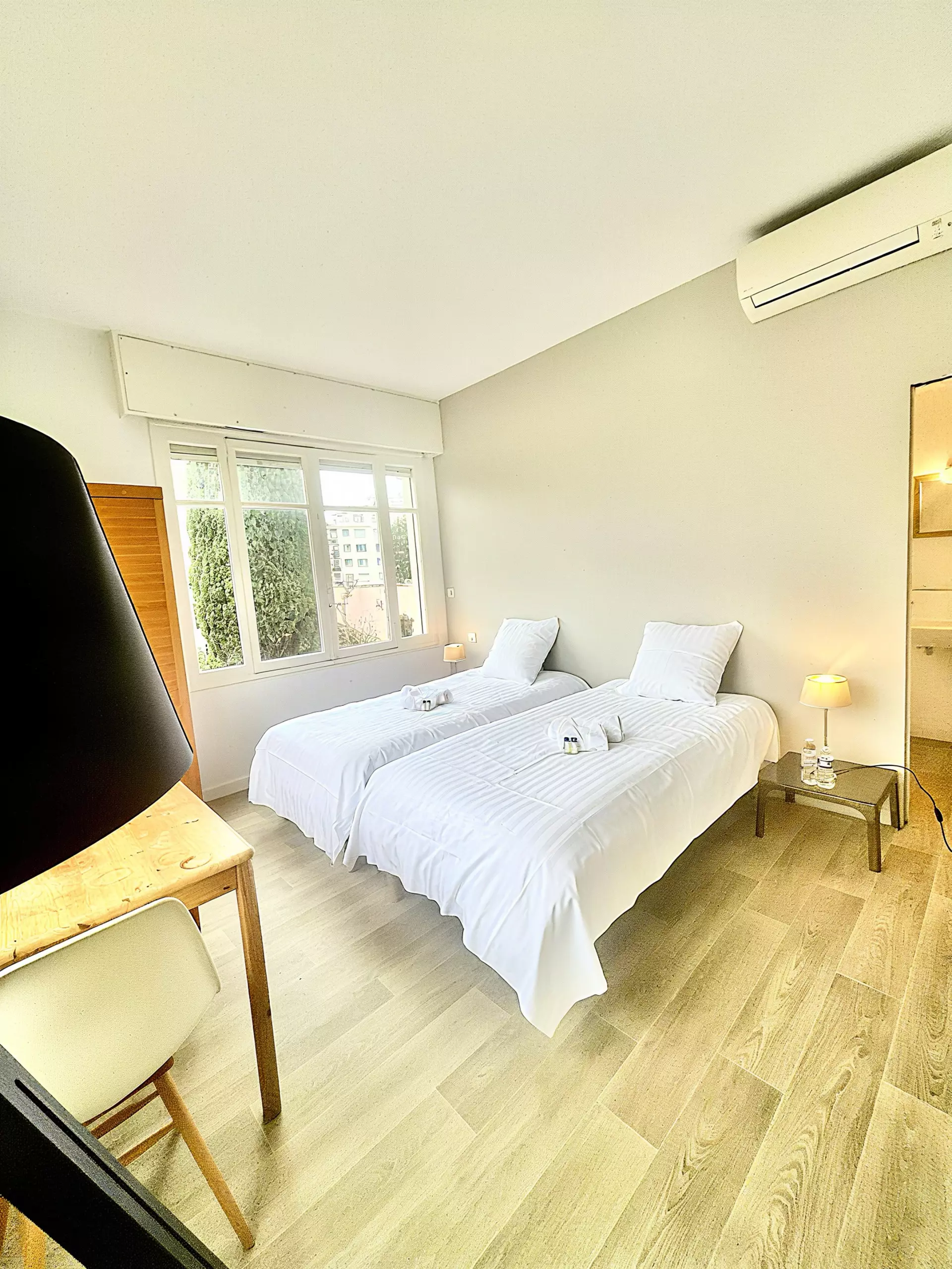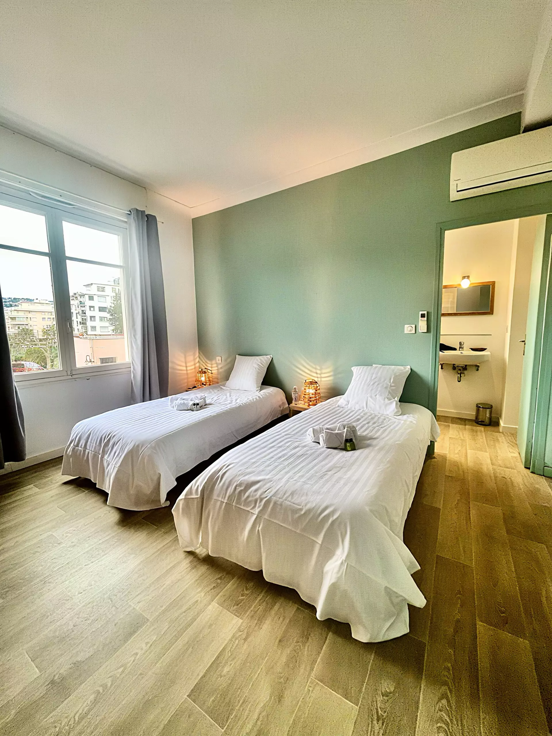 Une troisième chambre avec deux lits jumeaux et sa salle de douche.