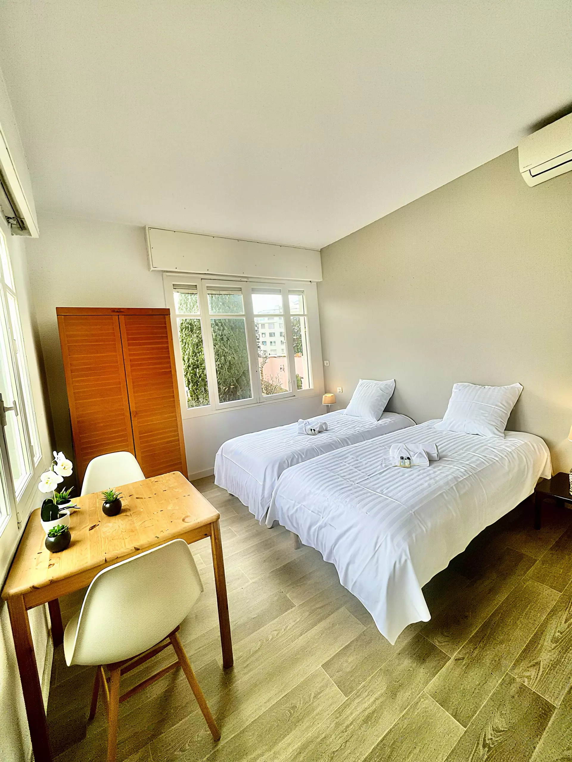 L'appartement est entièrement climatisé pour assurer un confort optimal. Une place de parking dans la résidence est disponible sur demande. Profitez également de la climatisation et du WIFI pour rendre votre séjour encore plus agréable.