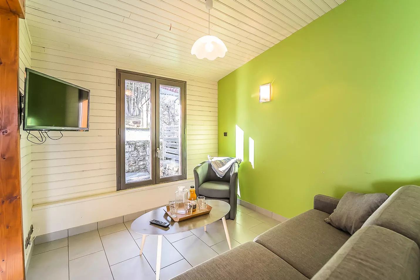 Hébergements de 57m² pour 4 à 6 personnes disposant d'un coin cuisine équipé (plaques induction, réfrigérateur/congélateur, micro-ondes, lave-vaisselle, four, cafetière, bouilloire, grille-pain), d'un séjour avec un poêle à bois, une télévision et un canapé-lit double (160x200), d'une chambre avec deux lits simple (90x190), d'une chambre avec un lit double (140x190), d'une salle d'eau et d'un wc indépendant. Terrasse privative équipée d'un salon de jardin. Les lits sont équipés de couettes.