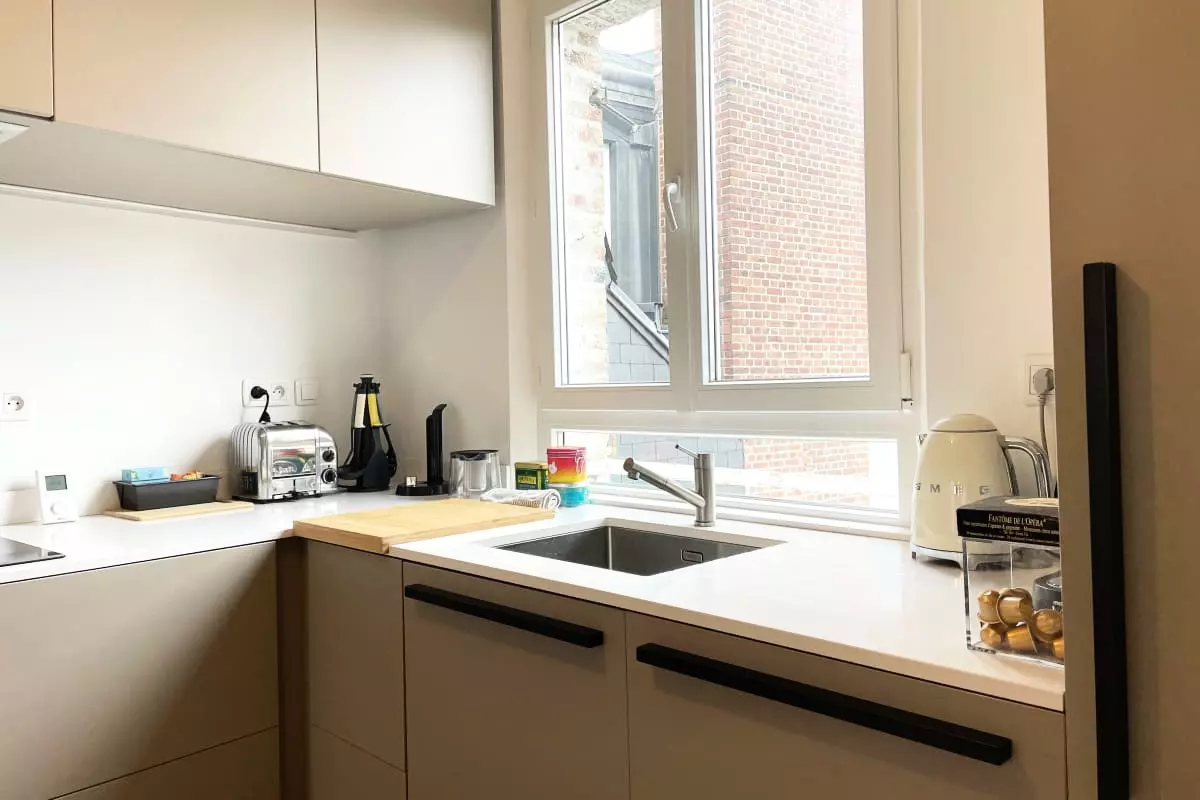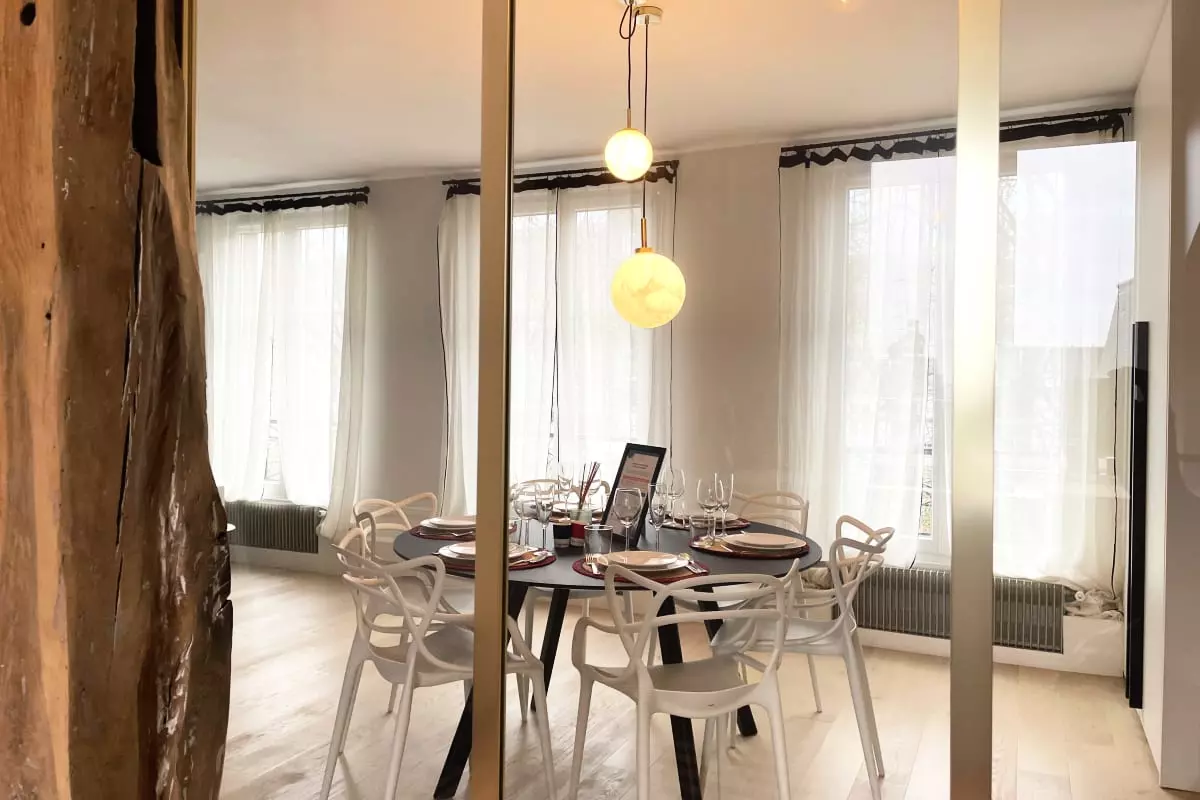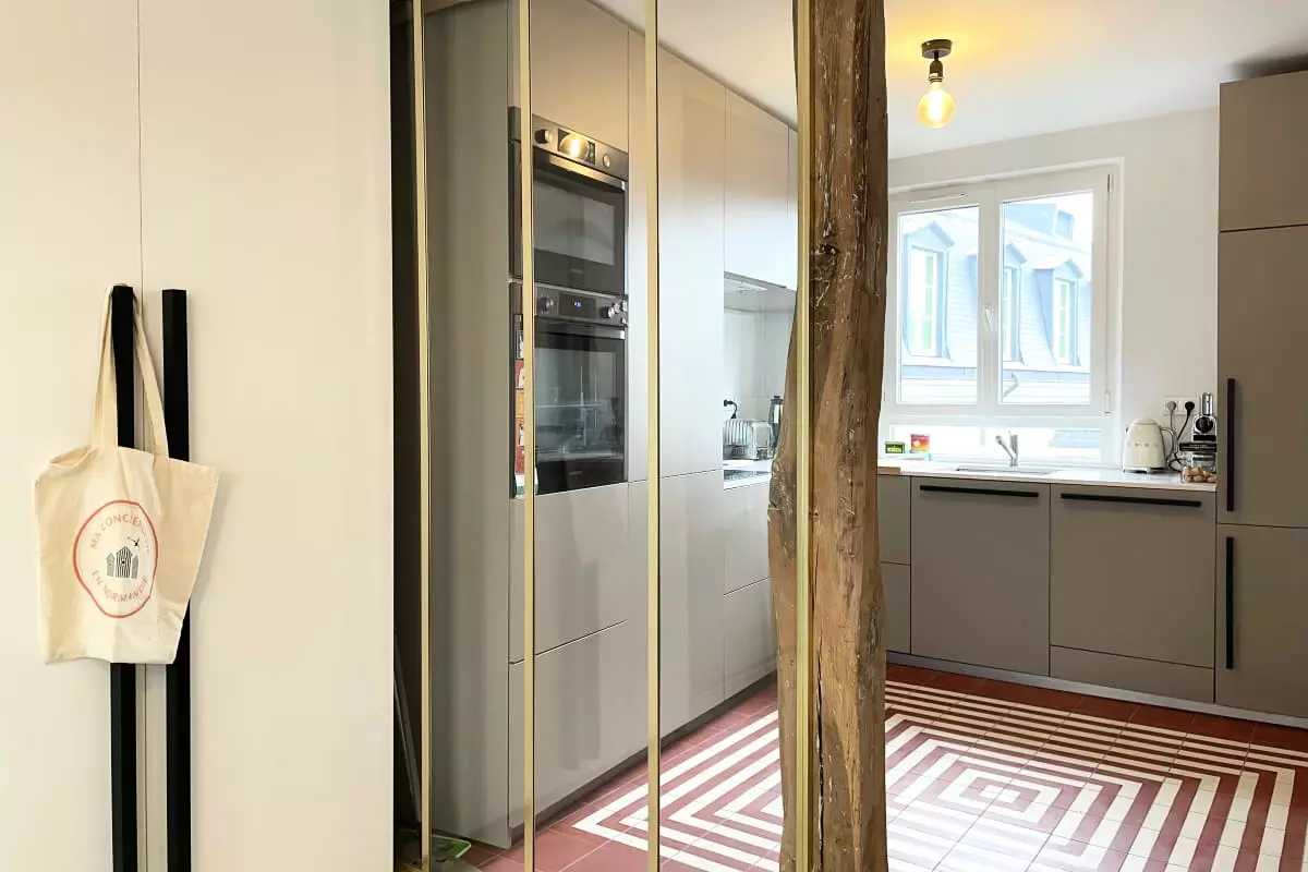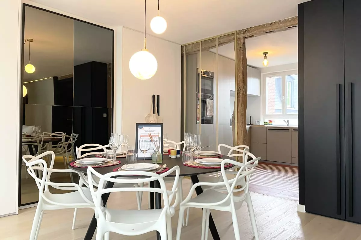 Idéalement situé en plein cœur de Rouen, à seulement quelques minutes à pied de la gare SNCF et de la célèbre place du Vieux Marché, cet appartement contemporain a été entièrement rénové.