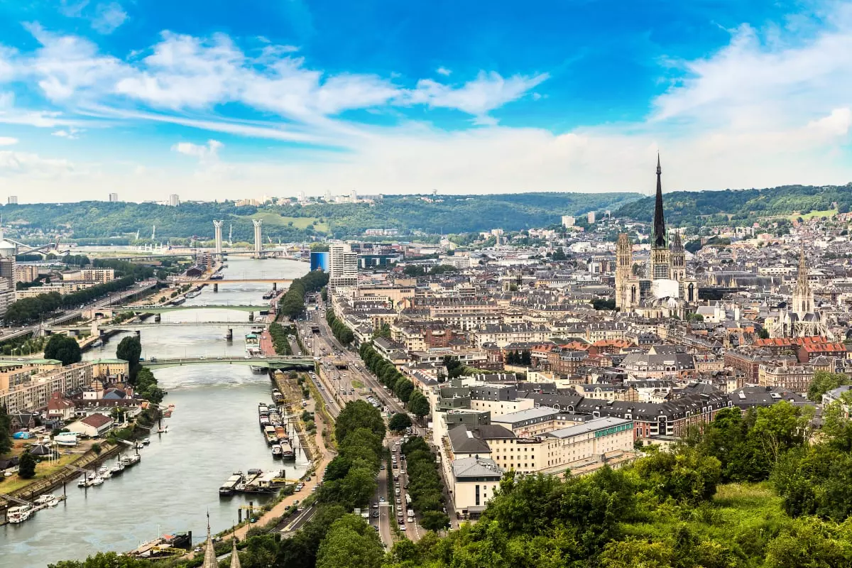Rouen, dite la Ville aux cent clochers, est située au nord-ouest de la France et traversée par la Seine.