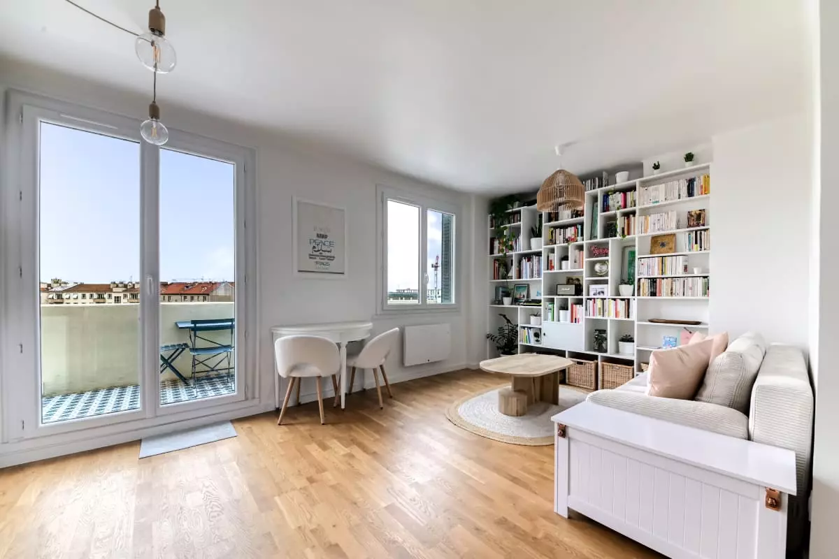 Découvrez cet appartement lumineux de 49 m², perché au 9ème et dernier étage avec ascenseur, offrant une vue panoramique à 360° sur Lyon, incluant la basilique de Fourvière et le Mont Blanc par temps clair. Ce logement peut accueillir jusqu'à 4 personnes.