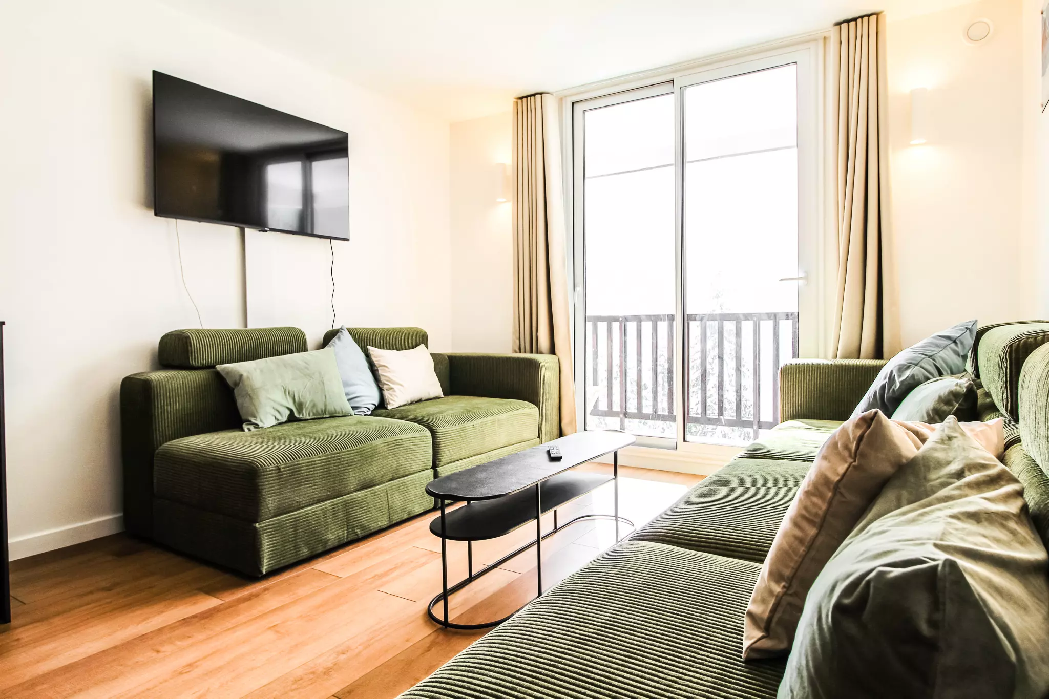 La rénovation de très haute qualité de l'appartement a compris notamment une nouvelle peinture, un nouveau revêtement de sol, le réaménagement de la salle de bains et de la cuisine, et l'ouverture de la cuisine pour créer un grand espace de vie ouvert. Le nouveau mobilier comprend les lits, les matelas et la literie, canapés, télévision, meubles de salle à manger, rideaux et des solutions de rangement pratiques dans le hall d'entrée et les chambres.