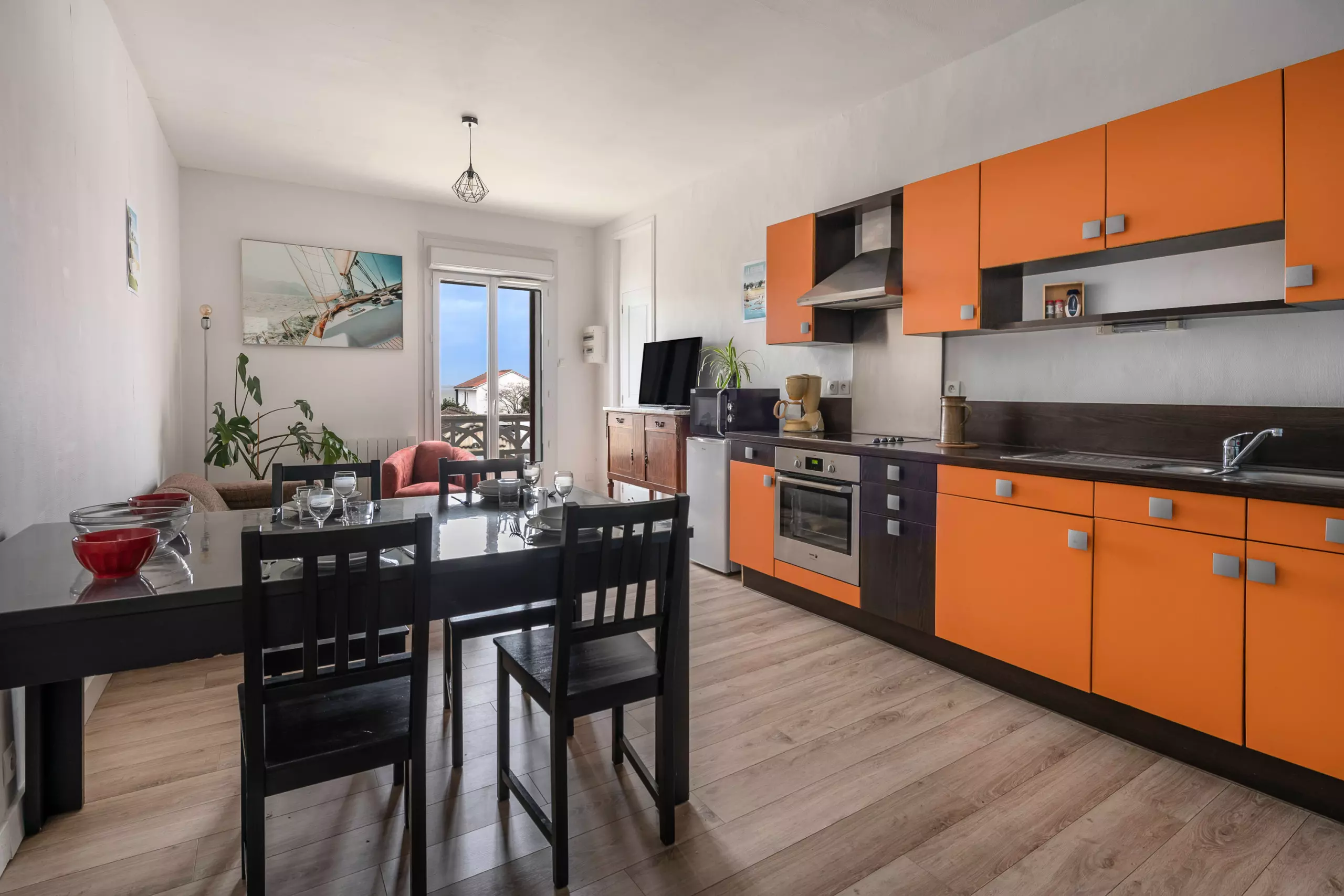 Le salon vous invite à un moment de detendte devant la télévision, puis vous trouverez la table de la salle à manger où patgaer de bons repas et moments de partage. Enfin la cuisine, elle est équipé de tout l'électroménager nécessaire pour que vous vous sentiez comme chez vous : plaque vitrocéramique, four, four à micro-ondes, cafetière filtre, grille-pain, bouilloire. t.