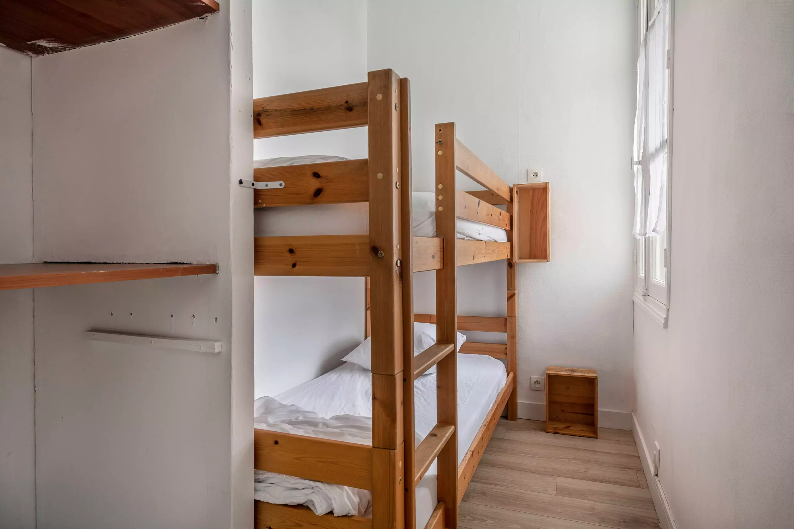 L'appartment pouvant accueillir jusqu'à 4 personnes dispose d'une chambre double (140) et d'une chambre passante avec lit superposé (2x90).Une salle d'eau avec toilette complète ce logement