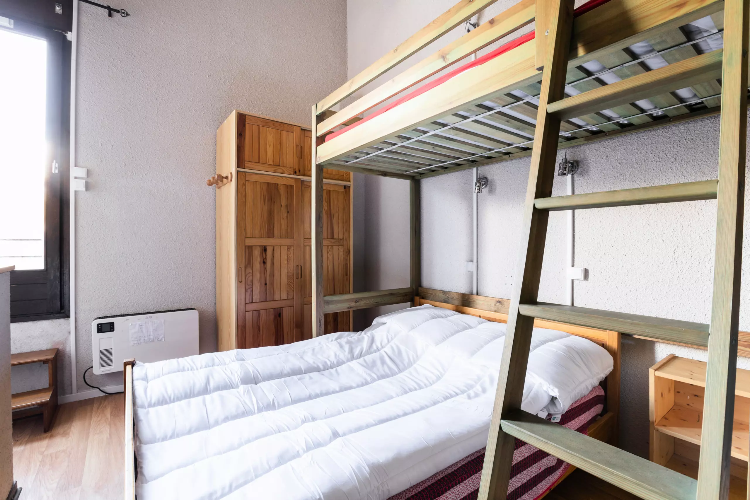 À l'étage, se trouve l'espace nuit comprenant une chambre avec un lit double (140x190), surmonté d'un lit simple (90x190). Juste à côté, derrière des rideaux, un autre coin nuit abrite deux lits simples (90x190), idéal pour les enfants.?Une salle de bain complète vient également compléter l'appartement.