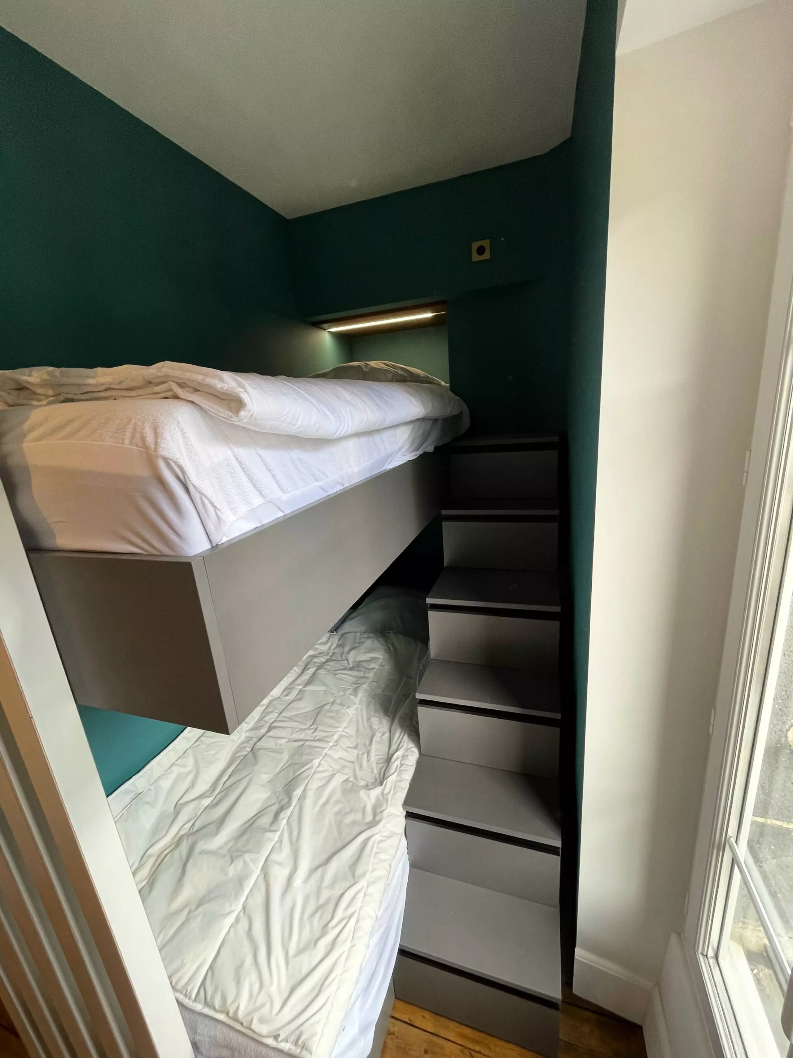 L'appartement dispose de 2 chambres : une avec lit double pour des nuits paisibles, l'autre avec 2 lits simples, idéale pour les enfants ou les amis. Le tout dans une ambiance moderne et cosy, propice à la détente.