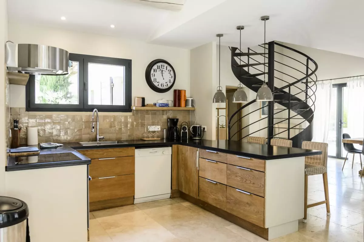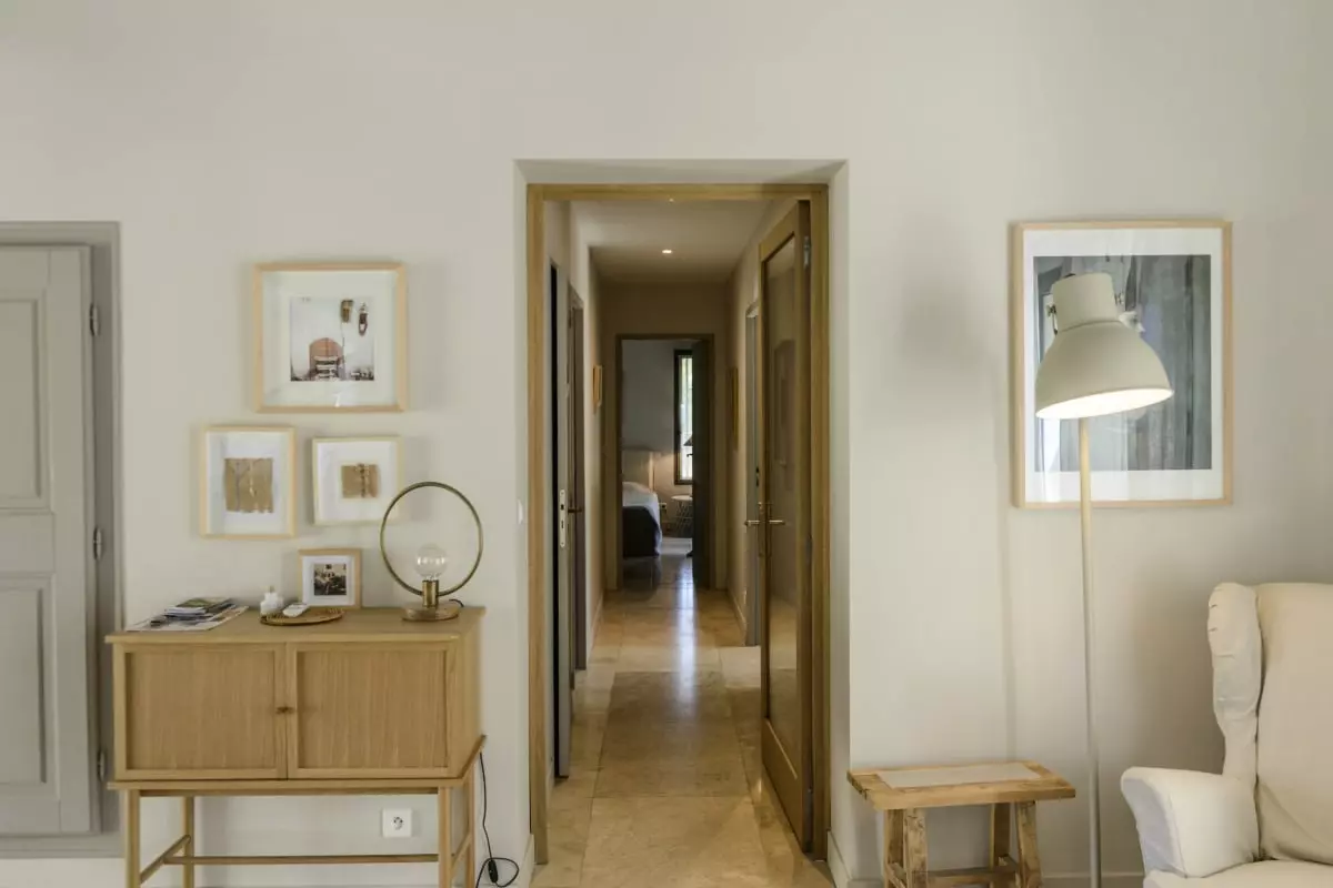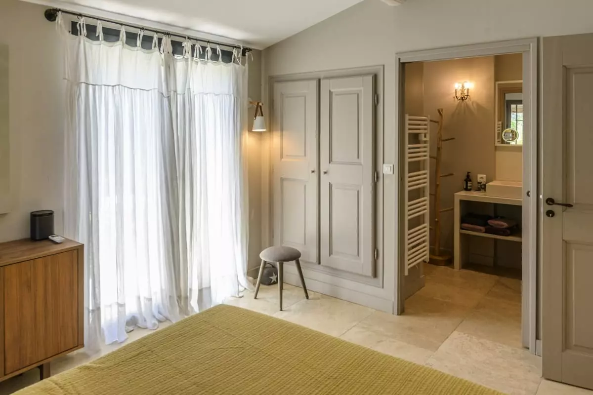 La Bastide Blanche dispose de quatre chambres et quatre salles de bain, offrant un confort optimal pour jusqu'à 8 personnes. Les salles d'eau sont équipées de douches à l'italienne et de vasques en pierre naturelle. La cuisine bien équipée est ouverte sur le séjour. Climatisation partielle dans la pièce à vivre et dans trois des quatre chambres. La maison offre également une buanderie avec machine à laver et sèche-linge.