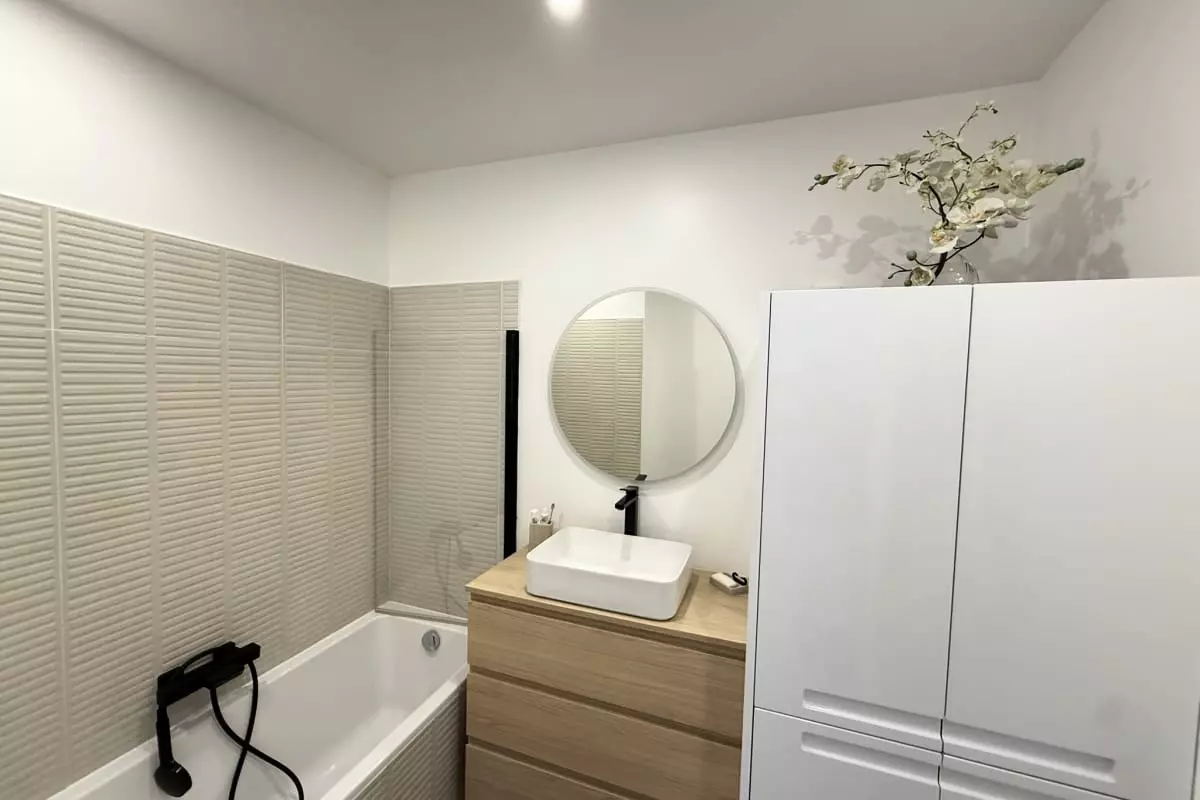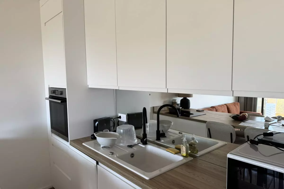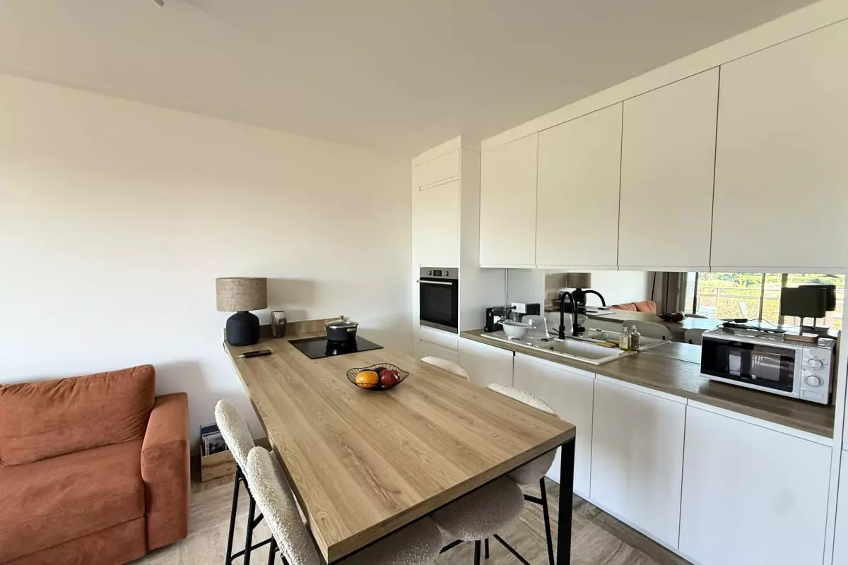 L'appartement est également équipé d'un store avec commande électrique, d'une télévision et de la fibre très haut débit, idéale pour des séjour de travail.