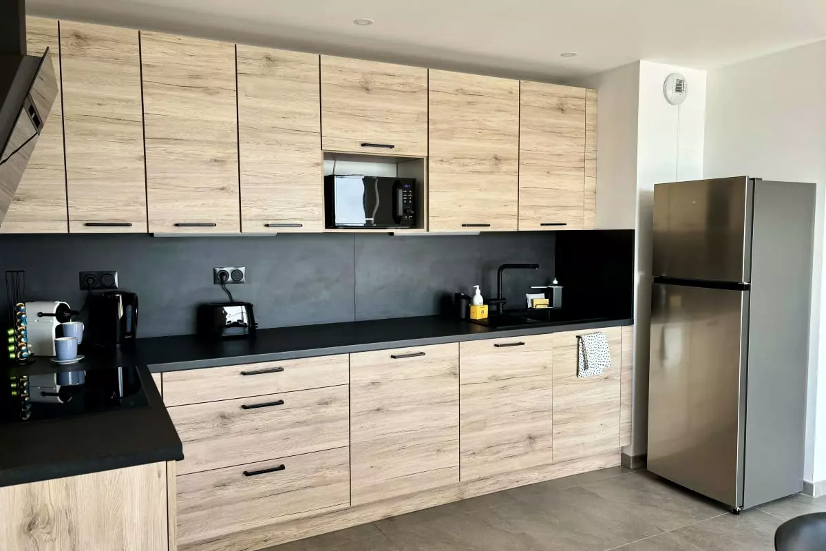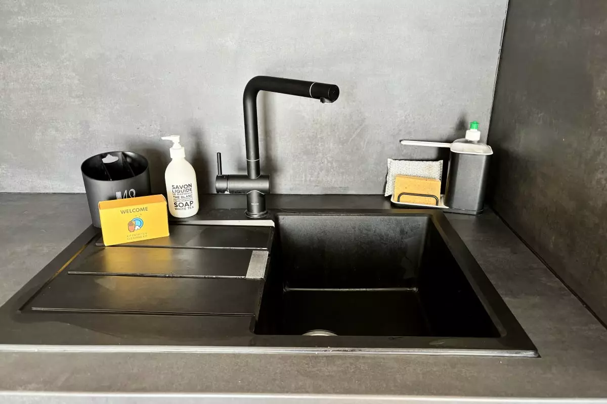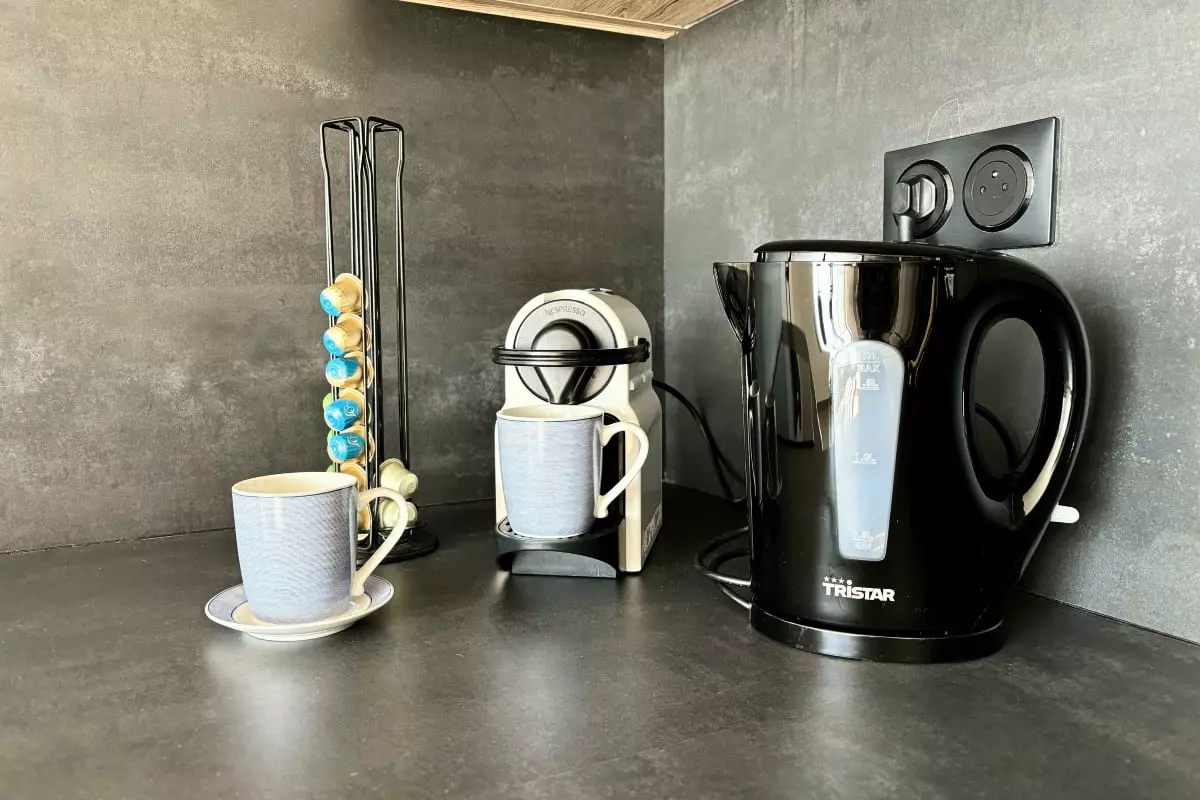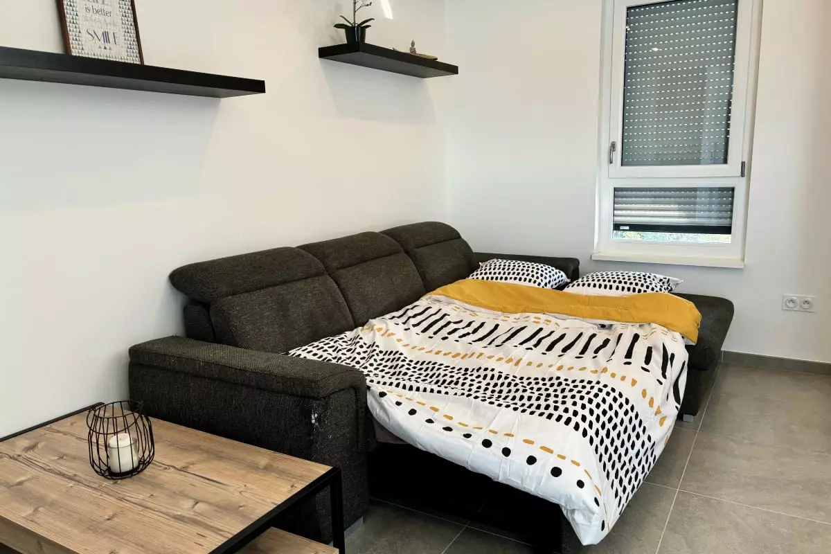L'appartement comprend une chambre cosy avec un lit double, ainsi qu'un canapé-lit dans le salon, permettant de recevoir jusqu'à 4 voyageurs. Profitez d'une cuisine moderne et entièrement équipée avec un four, un micro-onde, un lave-vaisselle et une machine à café pour vos petits-déjeuners. Vous trouverez également un lave-linge à disposition, pratique pour les séjours prolongés.