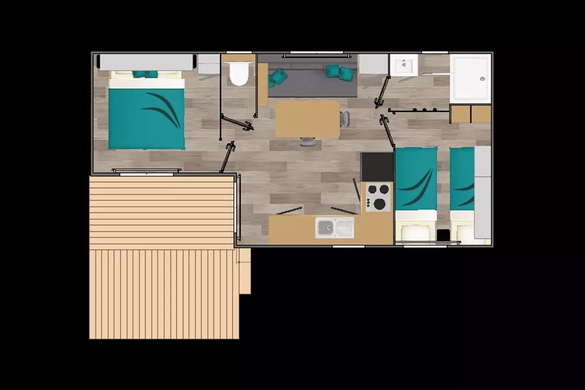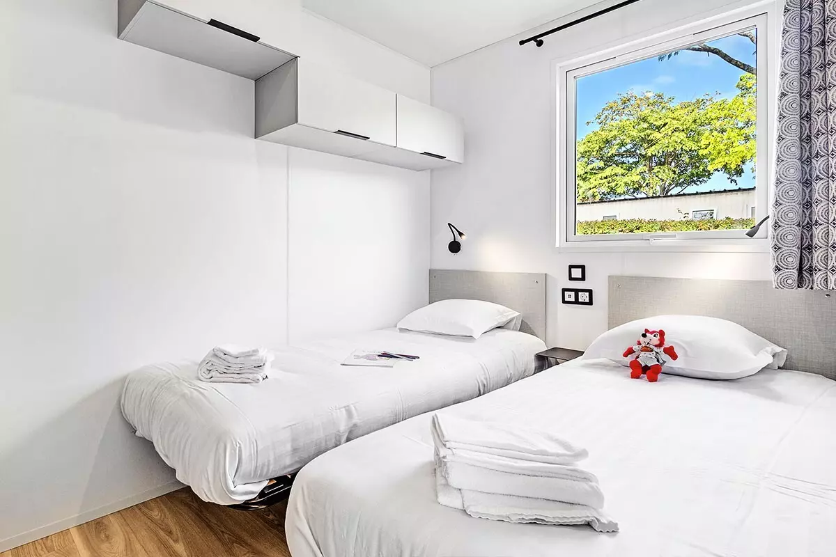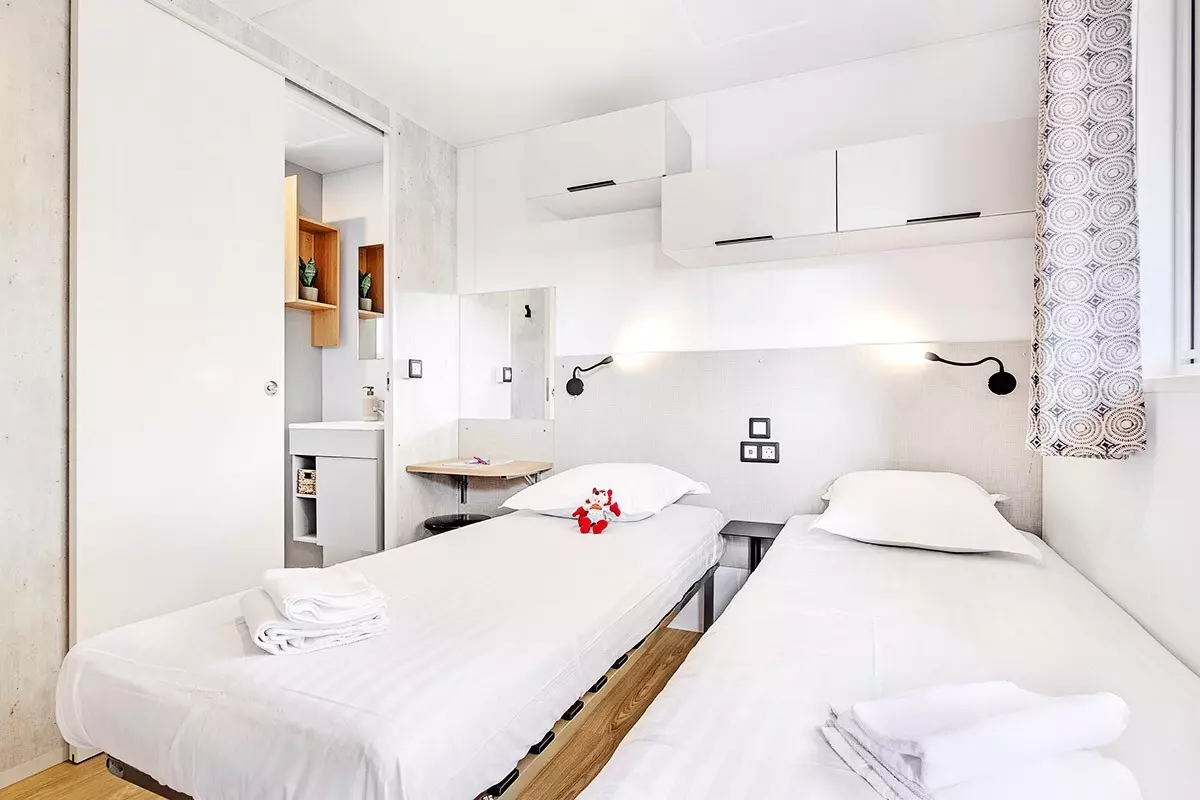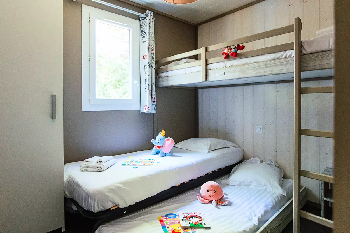 A noter : Les tailles de lits mentionnées sont non contractuelles. Il est possible d'avoir de légères différences de tailles selon les modèles de locatifs. La disposition des lits et la décoration peuvent également varier.