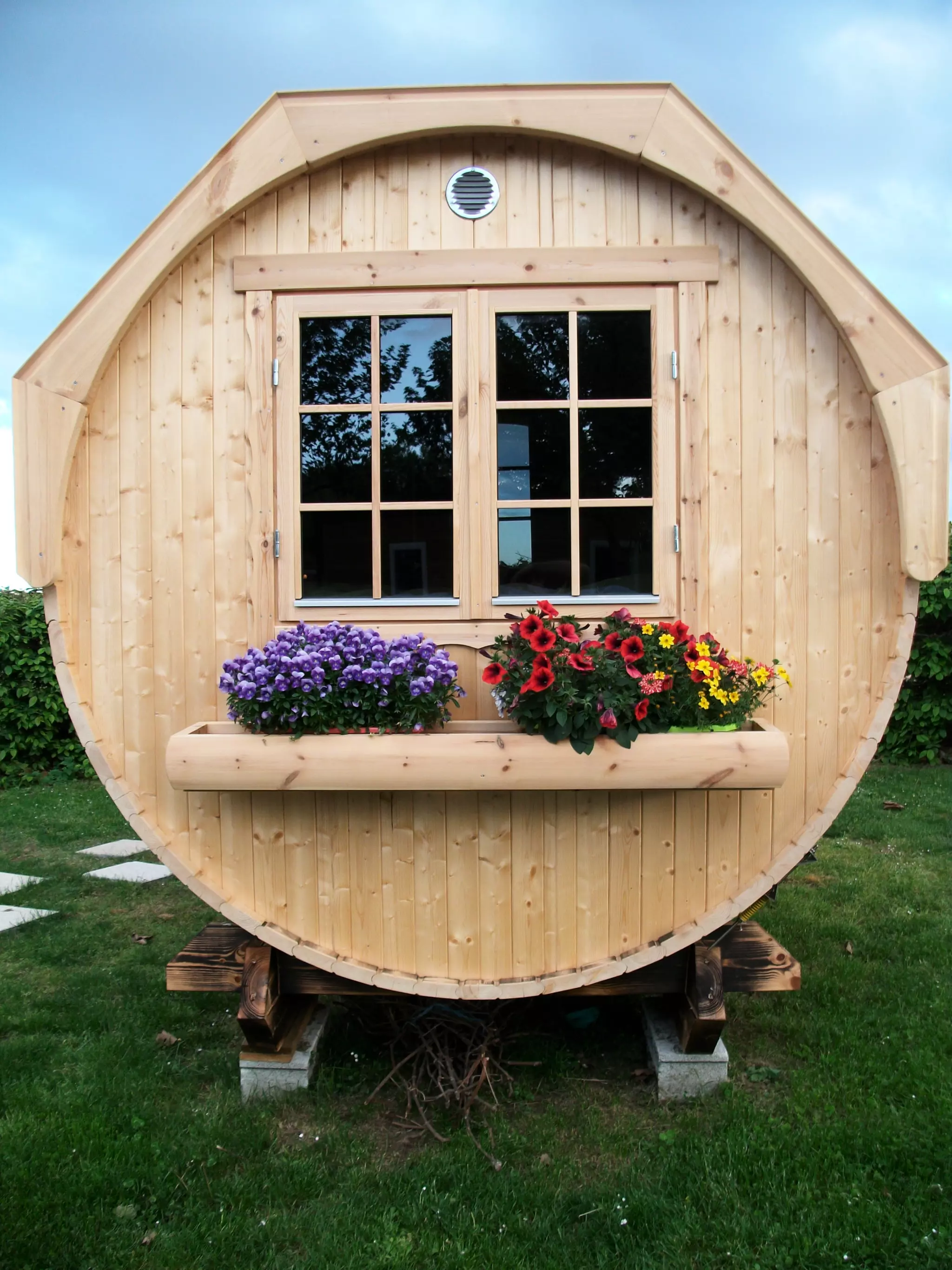1 chambre en forme de tonneau (sans sanitaires et sans eau) pour 2 personnes. Accès aux sanitaires communs.
