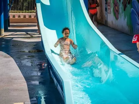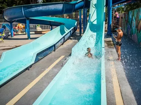 - D'avril à septembre, toute la famille profitera de l'espace aquatique composé d'une piscine extérieure, d'une pataugeoire avec jeux d'eau et de deux toboggans aquatiques.