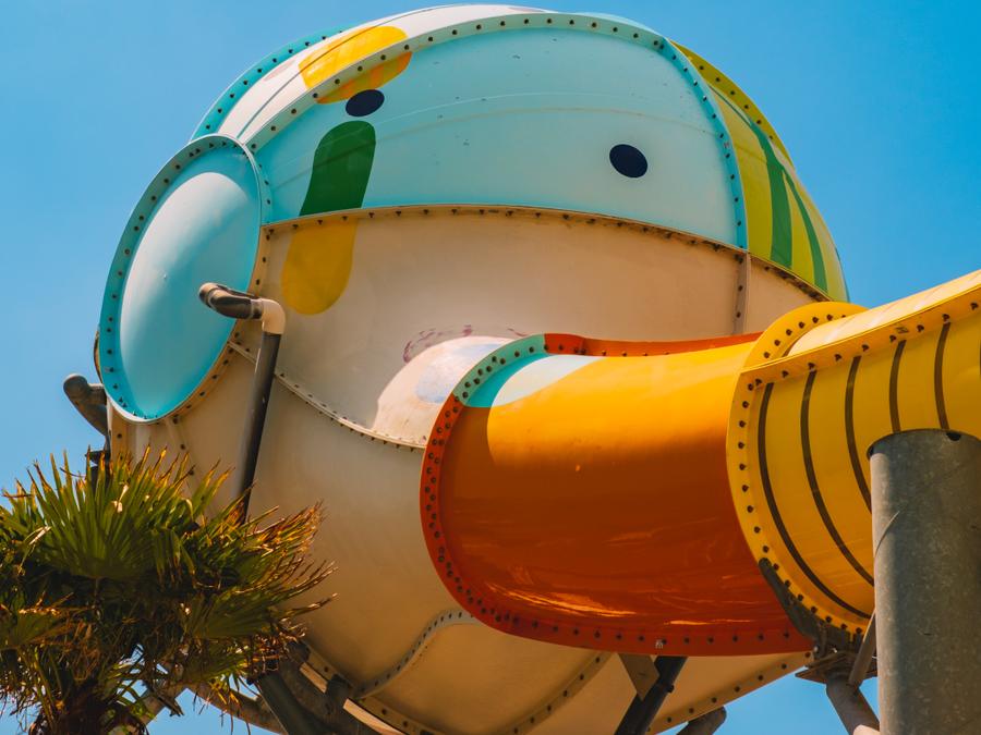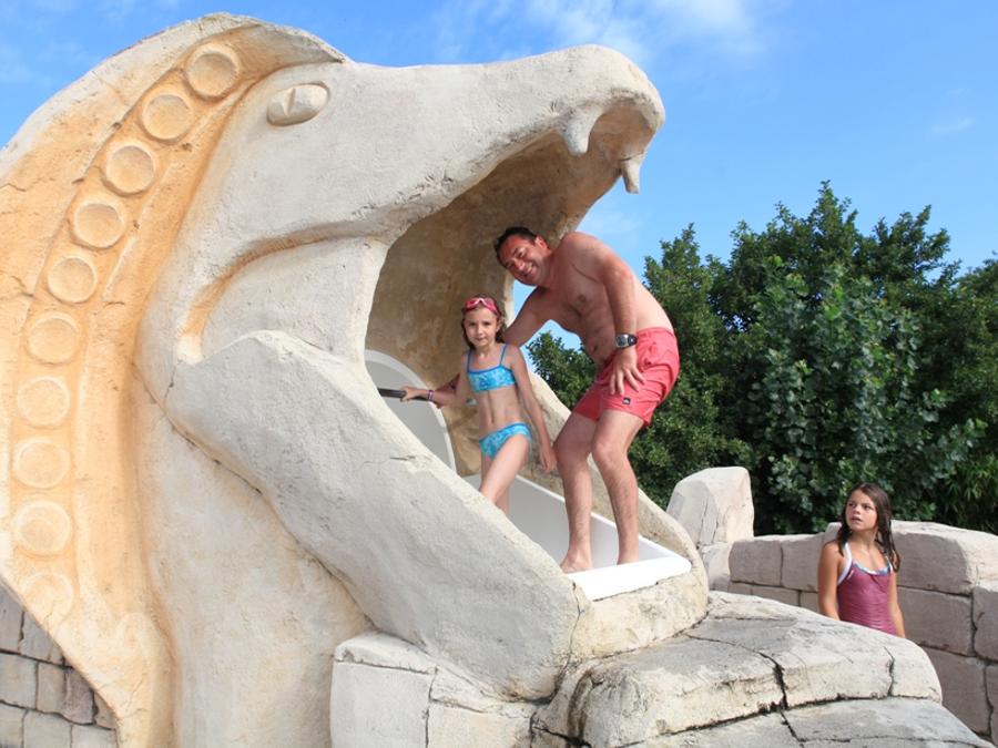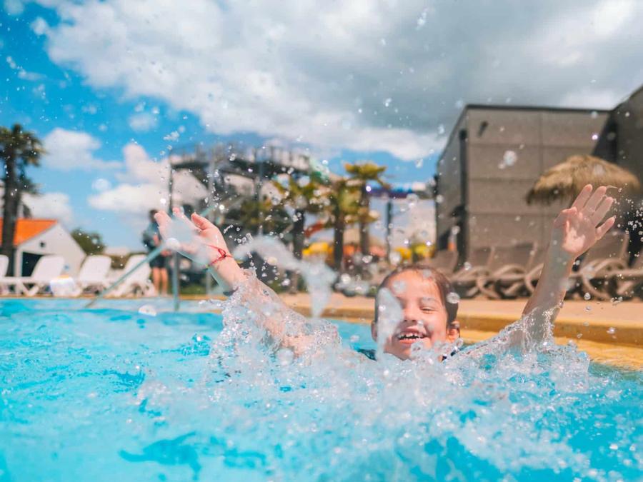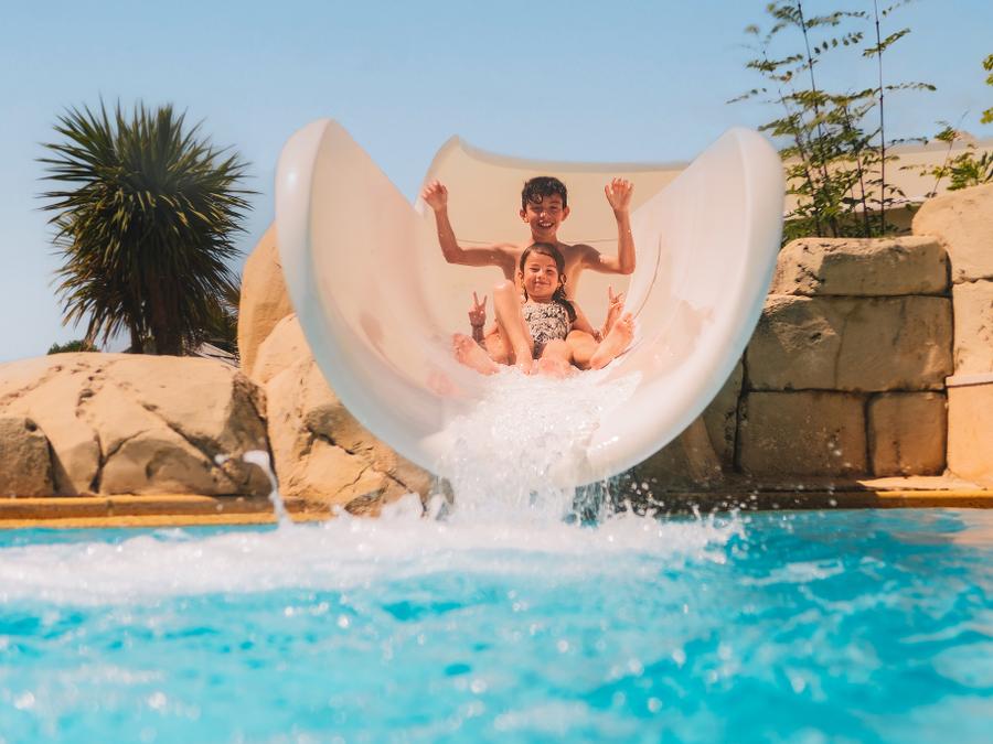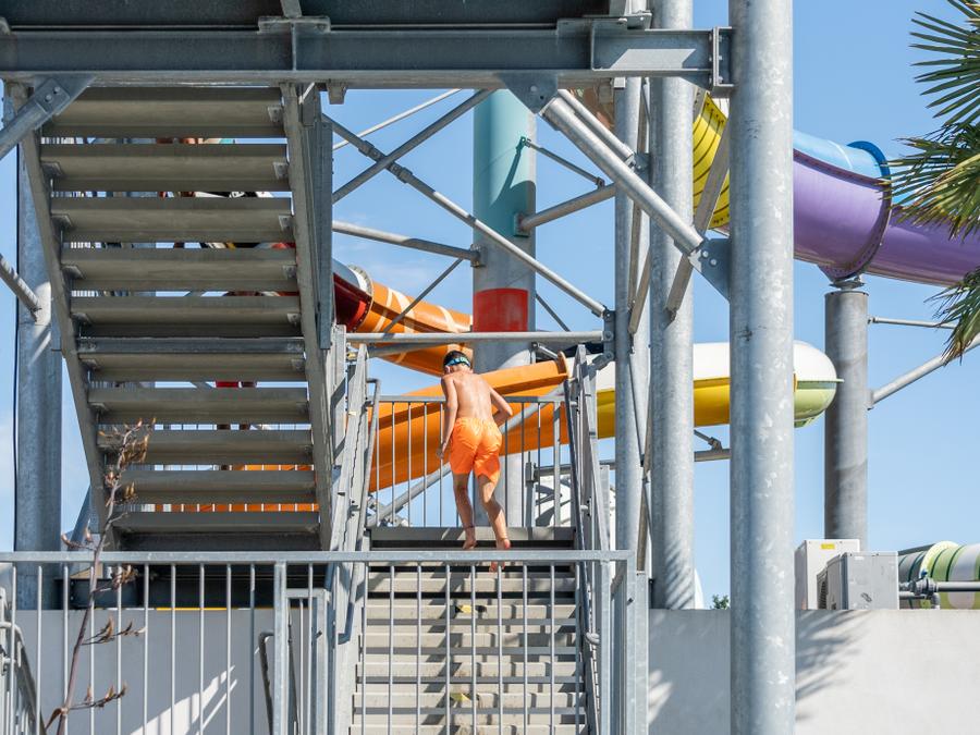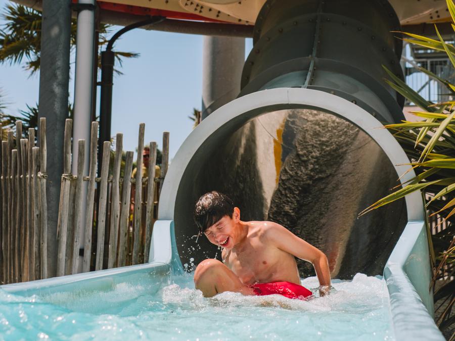 - Description : Piscine couverte et chauffée avec jacuzzi Piscine extérieure chauffée Bassin rectangulaire pour les longueurs 5 toboggans dont 2 à 12m de haut (Space Hole et Speed Ball) et 1 unique à 17m de haut (Racer - nouveauté 2026) Pataugeoire pour les enfants Espace solarium extérieur pour la détente Création d'un nouvel espace détente en 2026 avec 80 transats supplémentaires