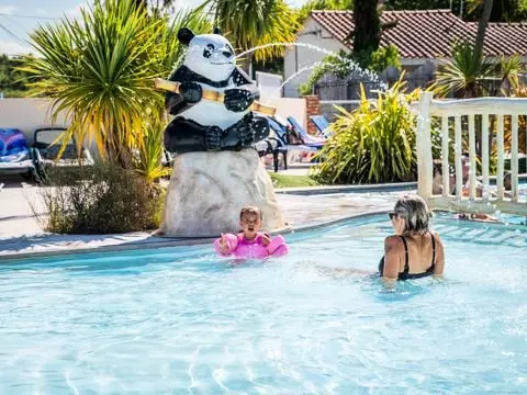- Piscine extérieure, Chauffée, Ouvert toute la saison, 4 toboggans, Avec pataugeoire, Gratuit, Deuxième espace aquatique composé d'une piscine avec un rivière de marche, banquettes massantes et avec un pataugeoire. Des chaises longues sont à disposition pour profiter du soleil vendéen. Nouveauté 2025 : 4 nouvelles pistes de toboggans dont une à bouée !