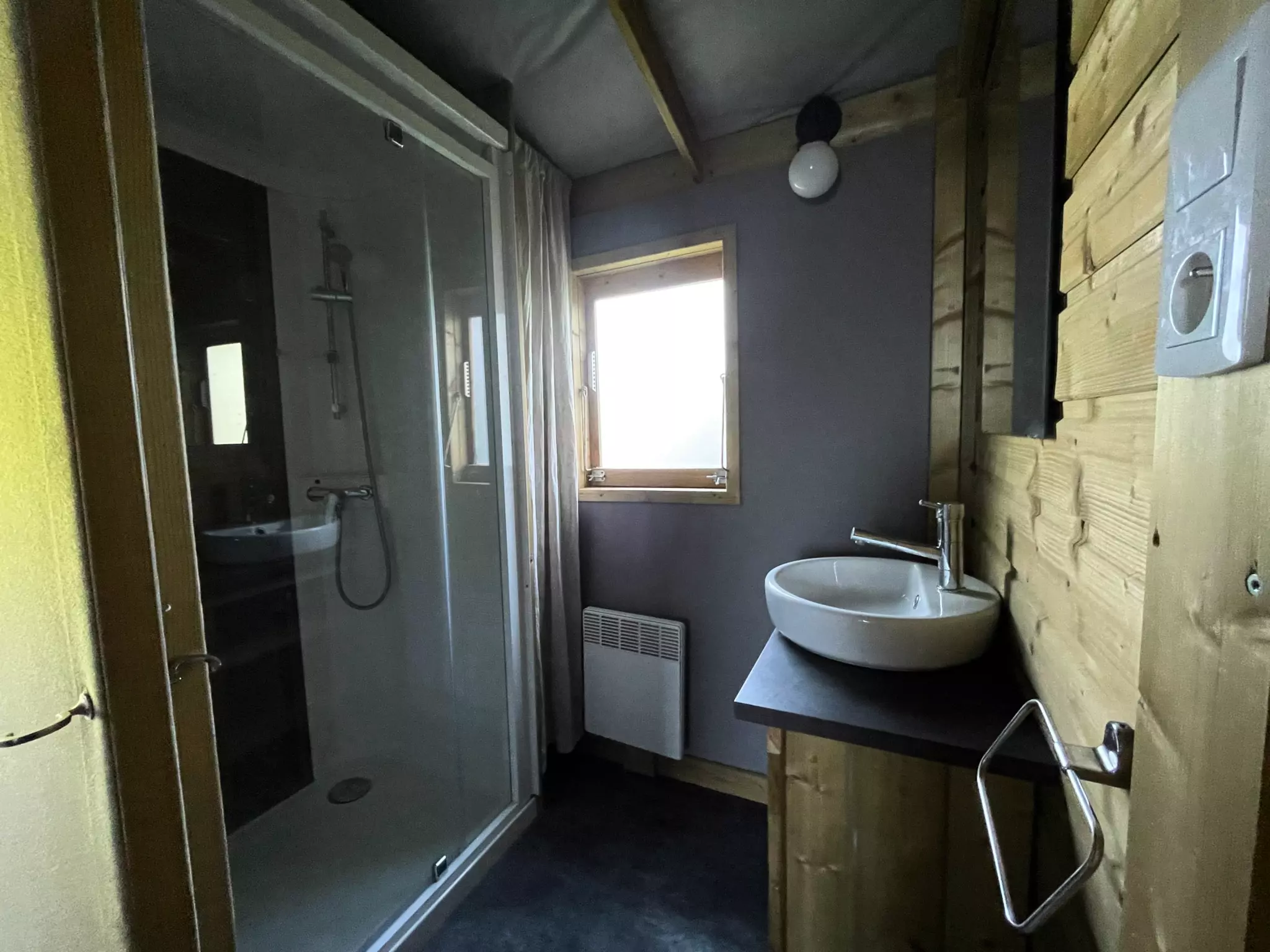À noter : Le chalet ne dispose pas de sanitaires (accès au bloc sanitaire du camping pour l'eau, la douche, le coin vaisselle et la laverie).