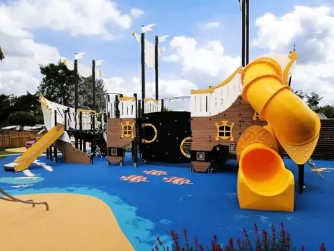 A l'extérieur, vous profiterez d'une grande piscine disposant de 3 toboggans, ainsi que d'une pataugeoire avec un bateau de pirates qui fera la joie de vos petits mousses!
