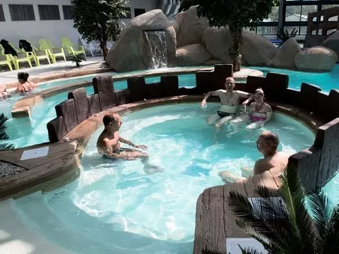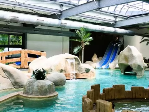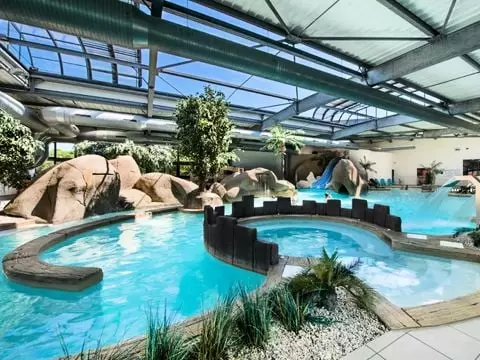 - Profitez d'un magnifique parc aquatique de 2600 m² composé d'un espace intérieur chauffé, équipé de toboggans, banquettes massantes, pistes glissantes, rivière à contre-courant, et diverses installations et activités aqualudiques. Mais aussi un sauna et un hammam en accès libre pour vos moments de détente.