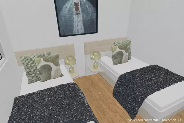 A noter : Les tailles de lits mentionnées sont non contractuelles. Il est possible d'avoir de légères différences de tailles selon les modèles de locatifs. La disposition des lits et la décoration peuvent également varier.