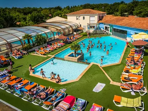 Le camping d'Oléron Loisirs est à seulement 3 km des plages de sables fin. Idéal pour des vacances en famille. Pour agrémenter votre séjour, vous trouverez sur place un espace aquatique composé d'une piscine couverte découvrable ainsi que d'un bassin extérieur avec pentaglisse aquatique et pataugeoire pour les enfants, une aire de jeux aqualudique couverte, 4 toboggans aquatiques, sauna et hammam.