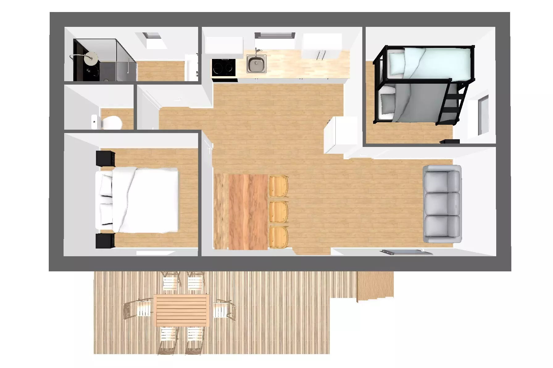 Chalet Mimosa Bleu 4 pièces 8 personnes Climatisé