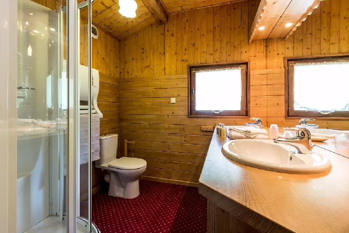 - Salle d'eau : douche, double vasque, chauffe serviette, WC, fenêtre