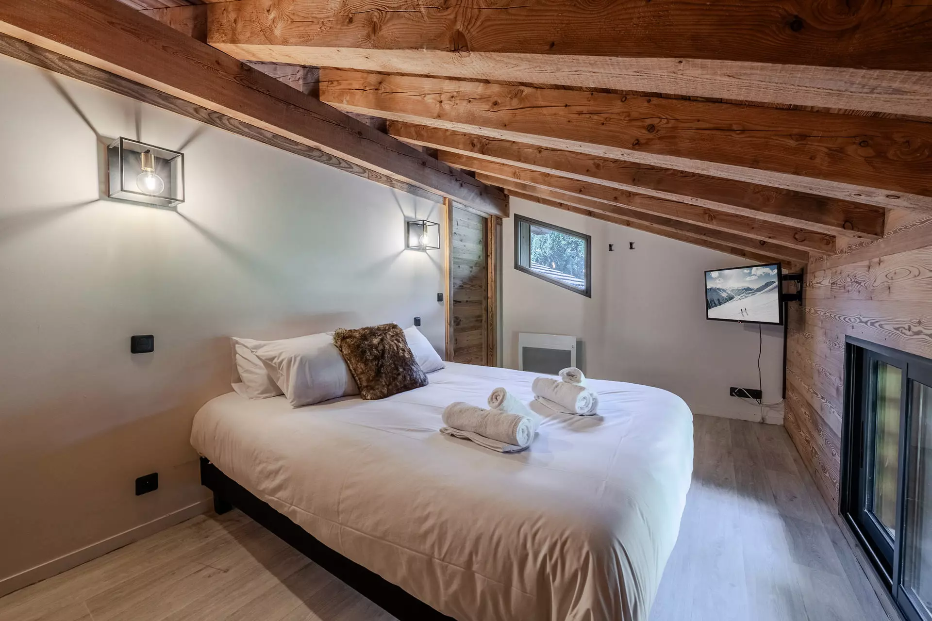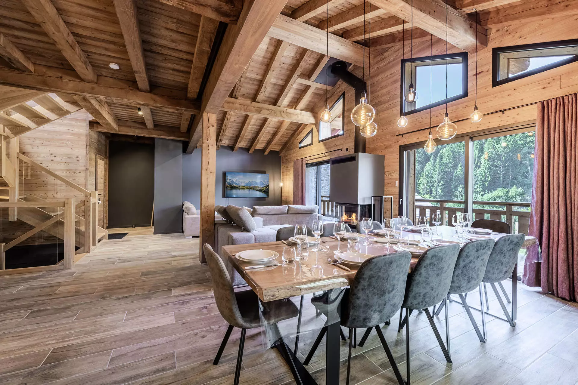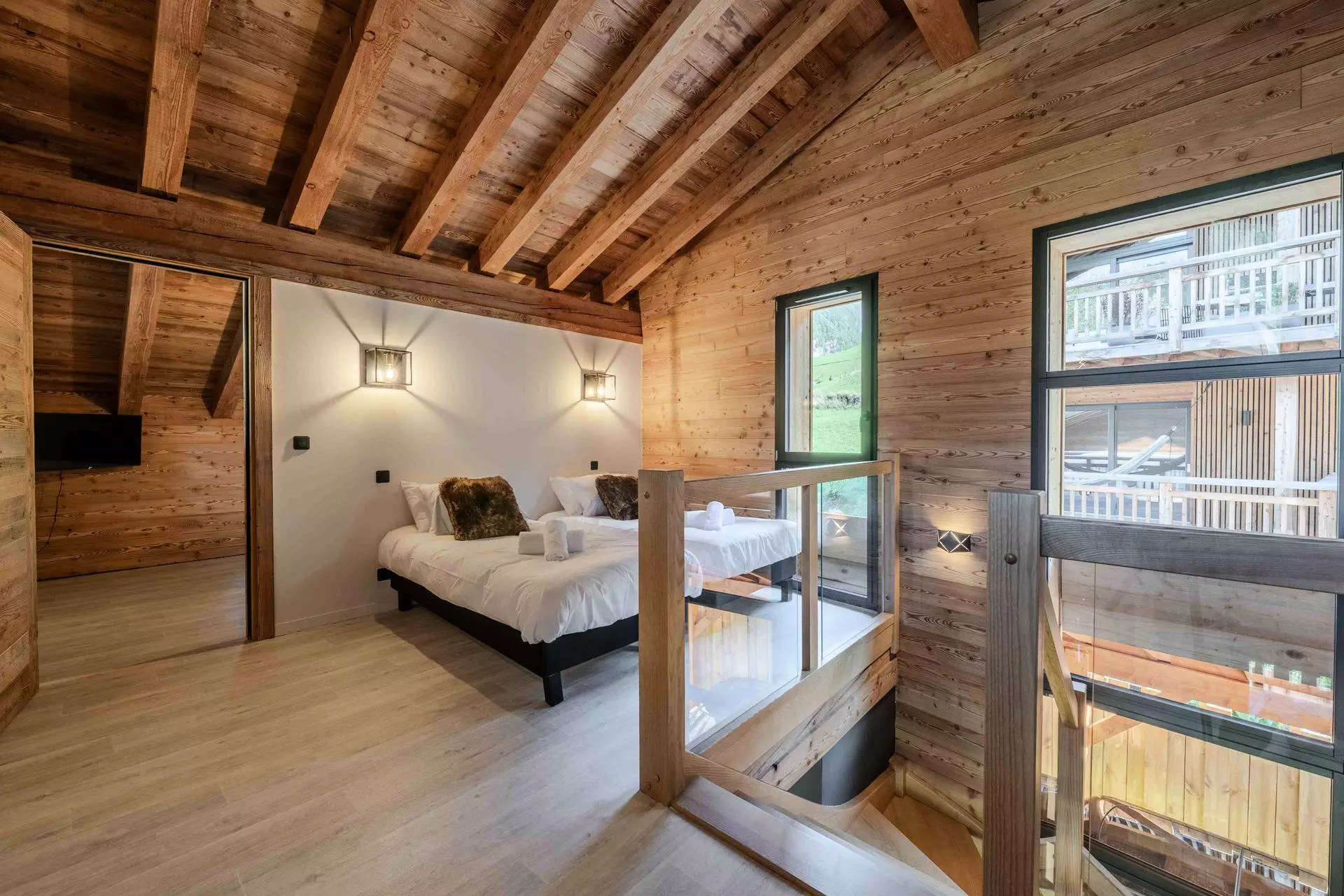 Ce chalet est composé de 4 chambres en suite, ainsi qu'une mezzanine. Il dispose également d'un grand espace de vie et d'une cuisine ouverte entièrement équipée.