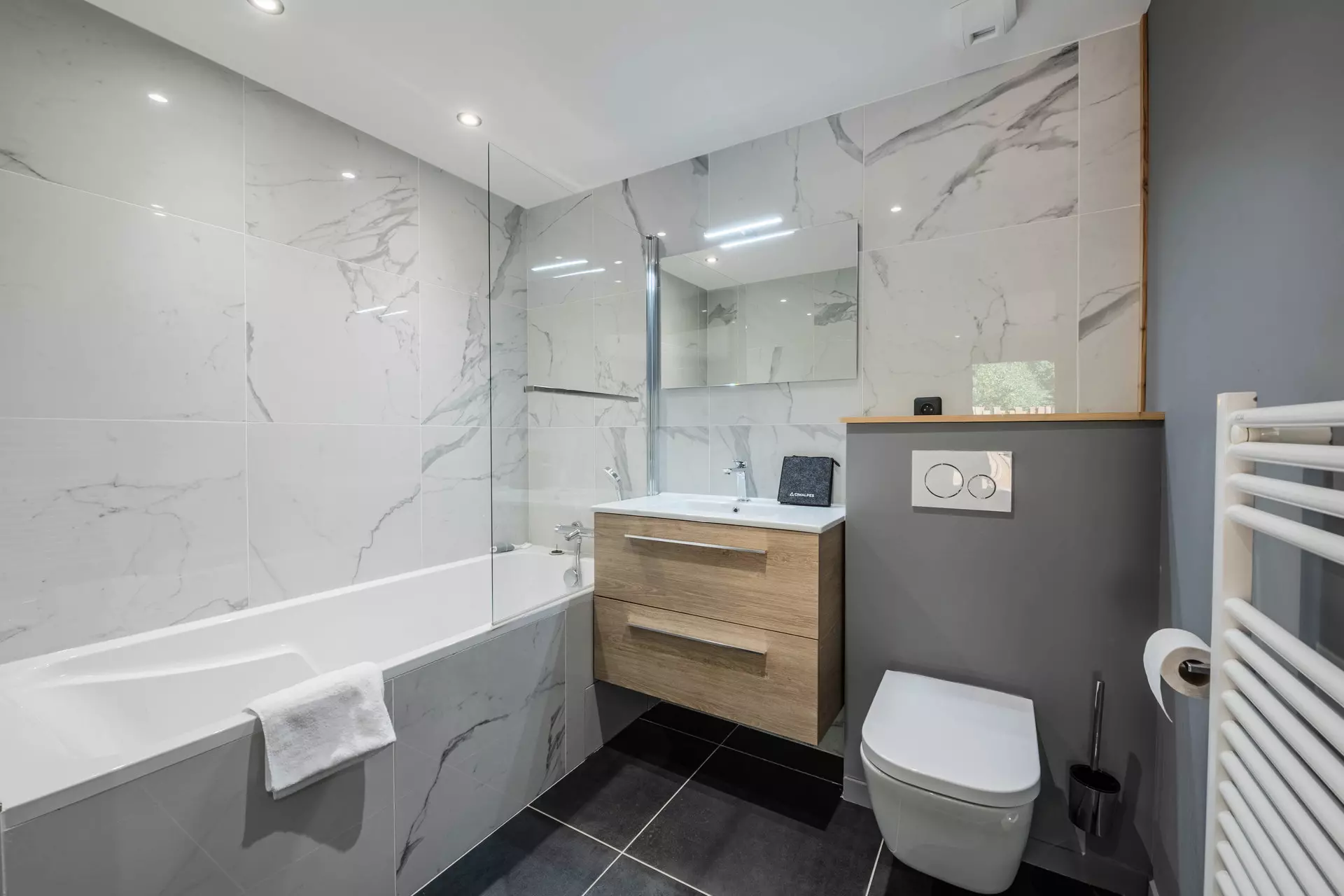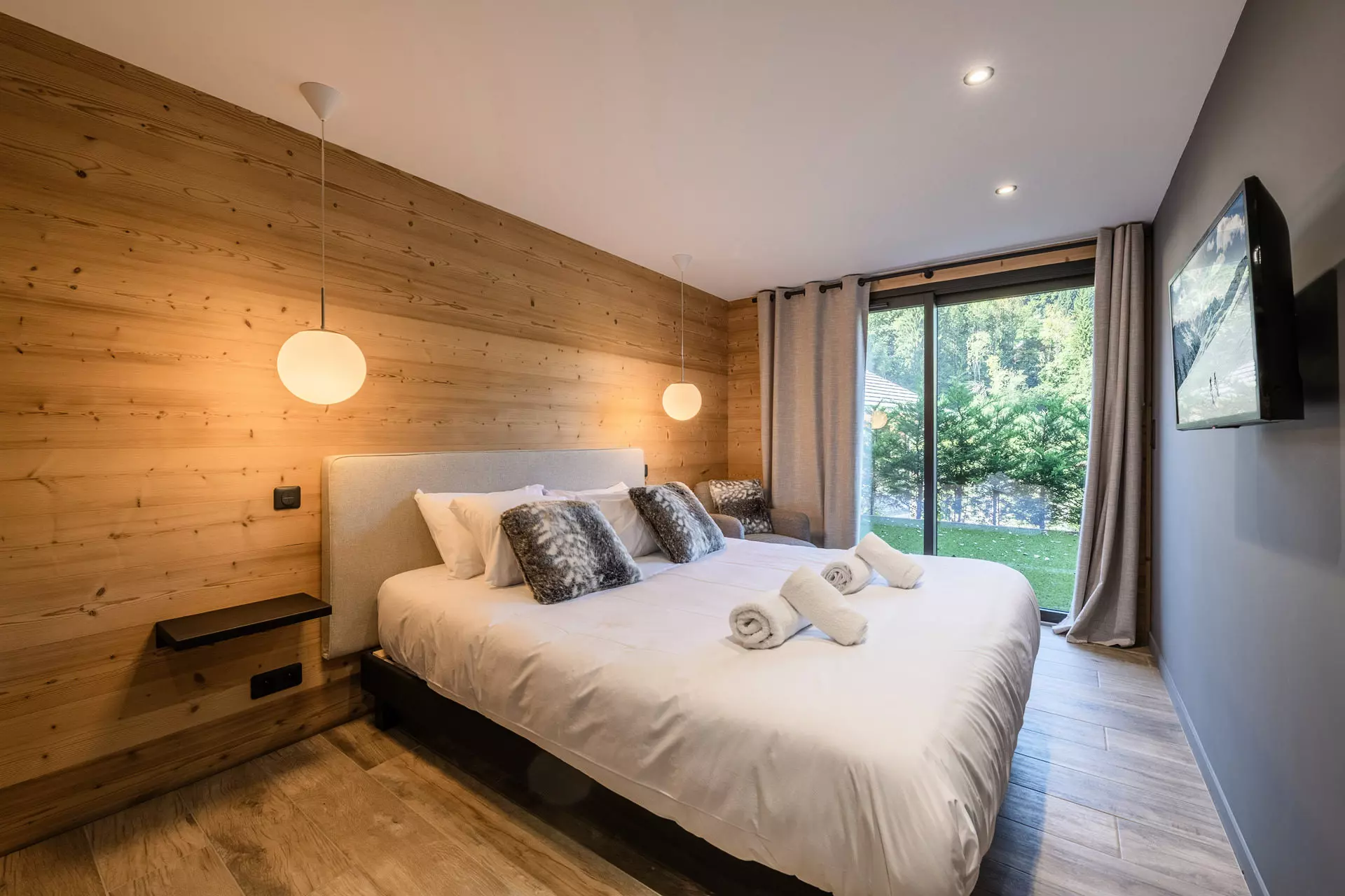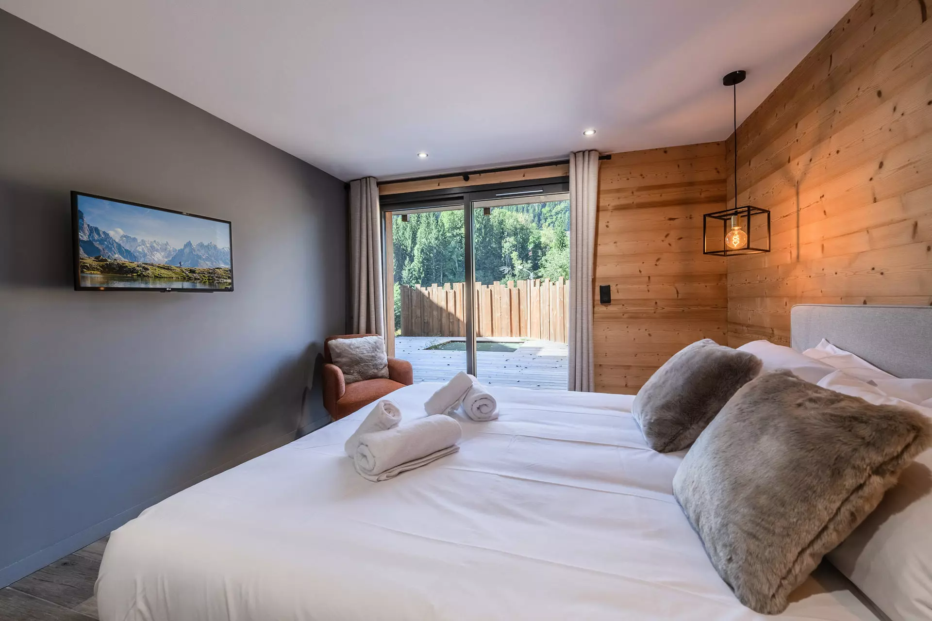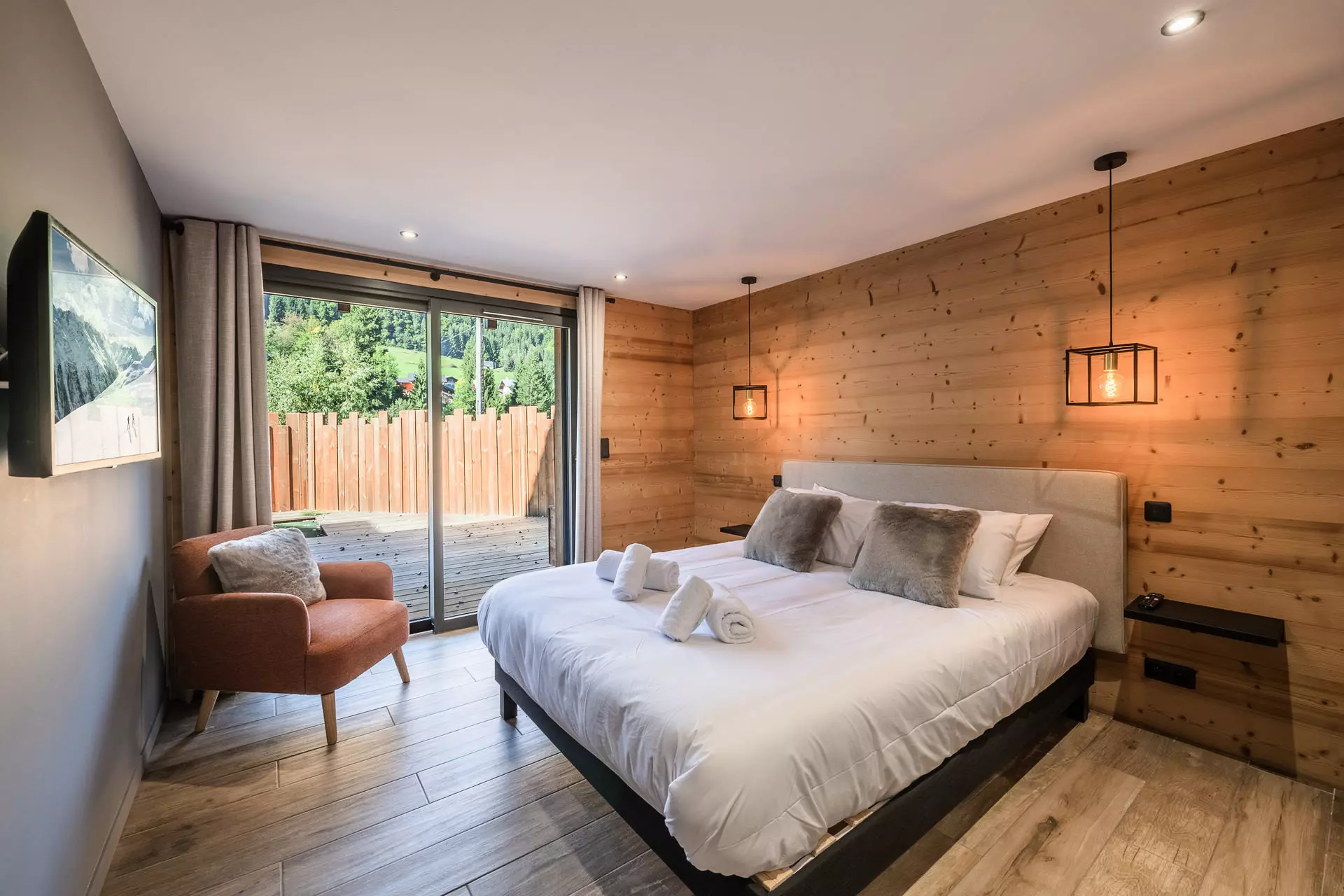 Ce chalet est composé de 4 chambres en suite, ainsi qu'une mezzanine. Il dispose également d'un grand espace de vie et d'une cuisine ouverte entièrement équipée.