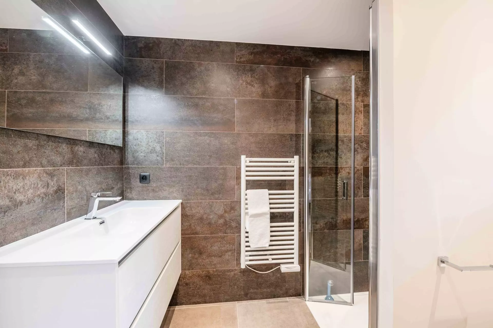 - Chambre 3 en suite avec lit double (160x200cm), télévision et accès jardin