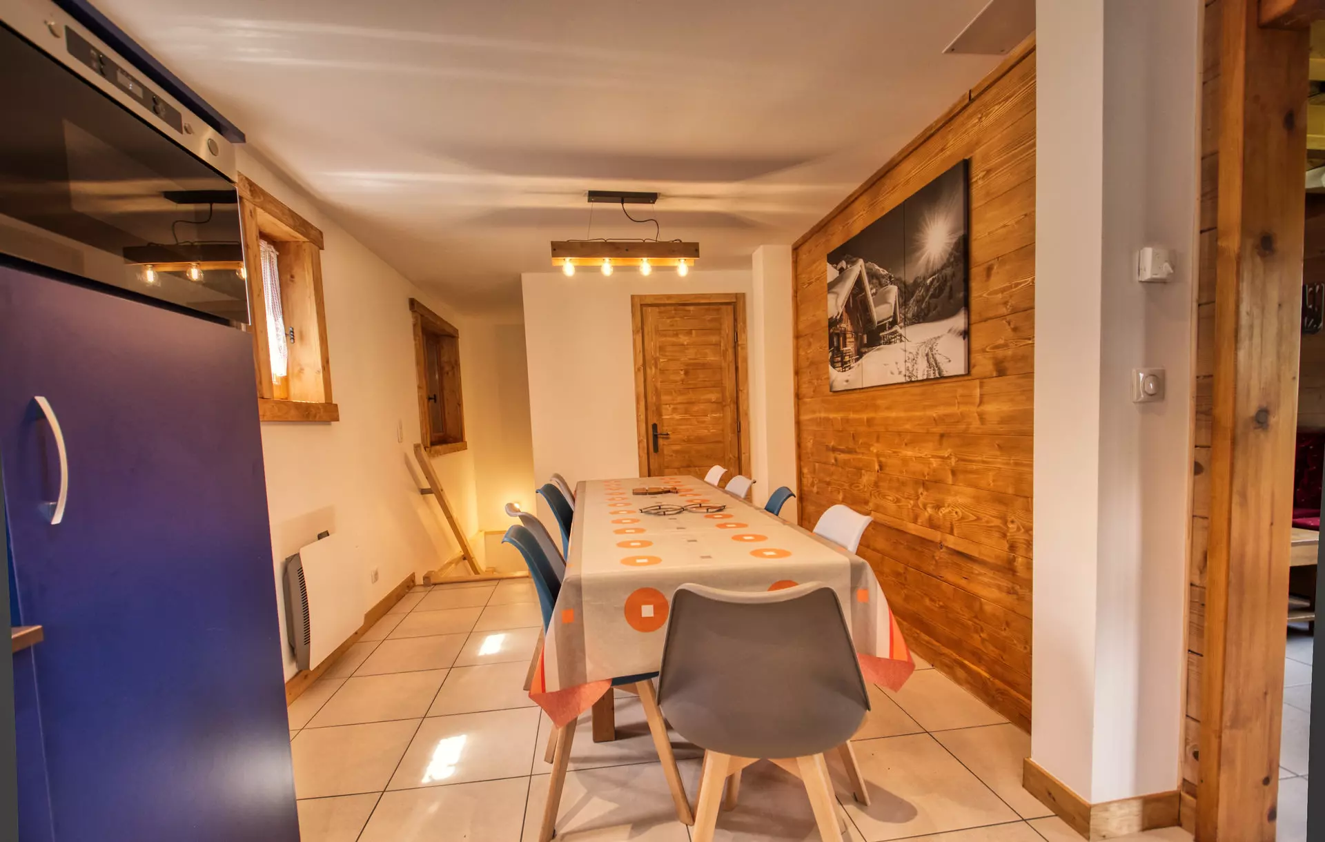 niveau -1: 2 chambres avec chacune un placard de rangement-1 sdd-1 wc- 1 casier à skis avec racks chauffants- 1 buanderie avec lave-linge -sèche - linge- 1 réfrigérateur, 1 escalier pour accéder au rdc comprenant: