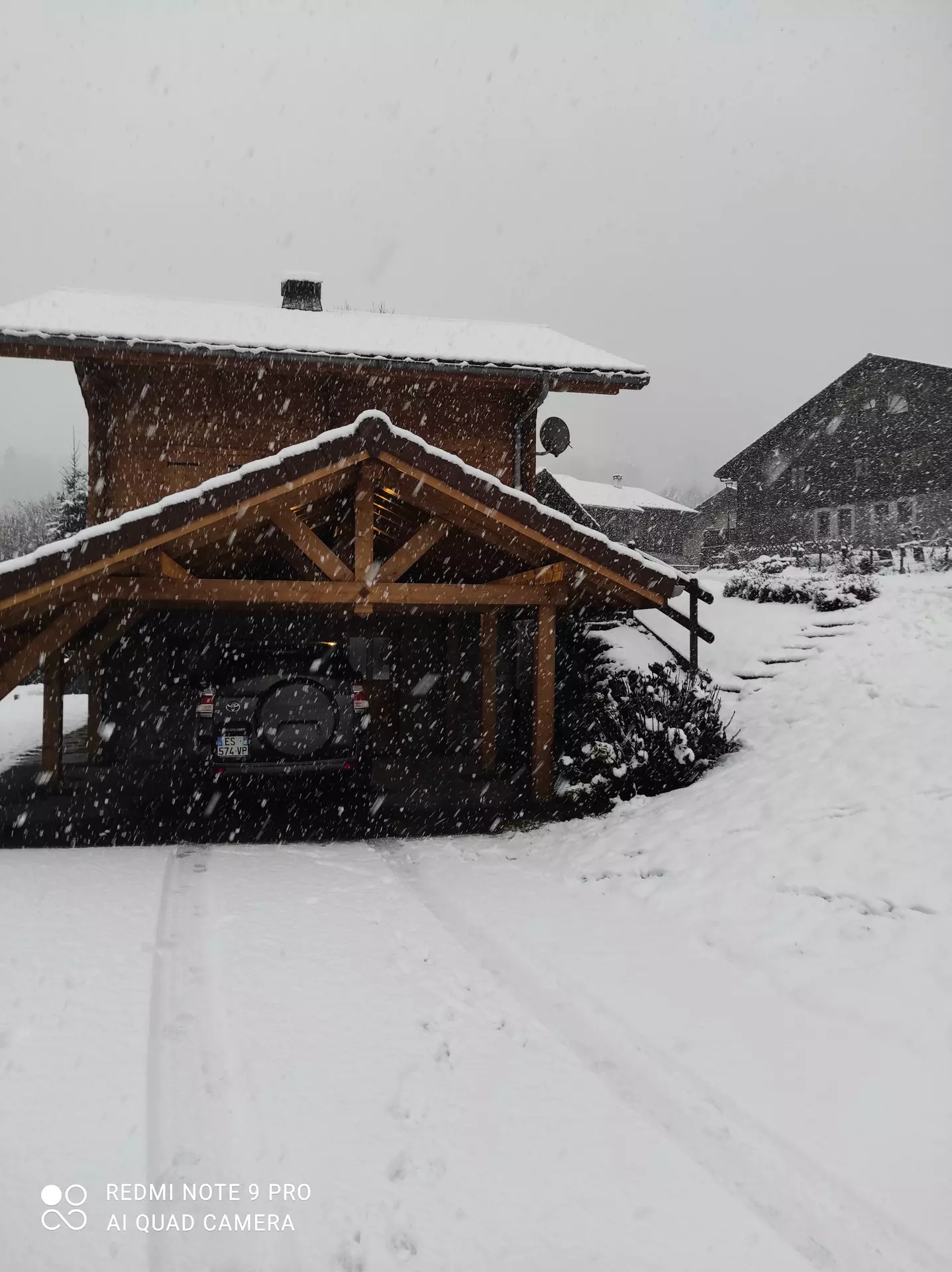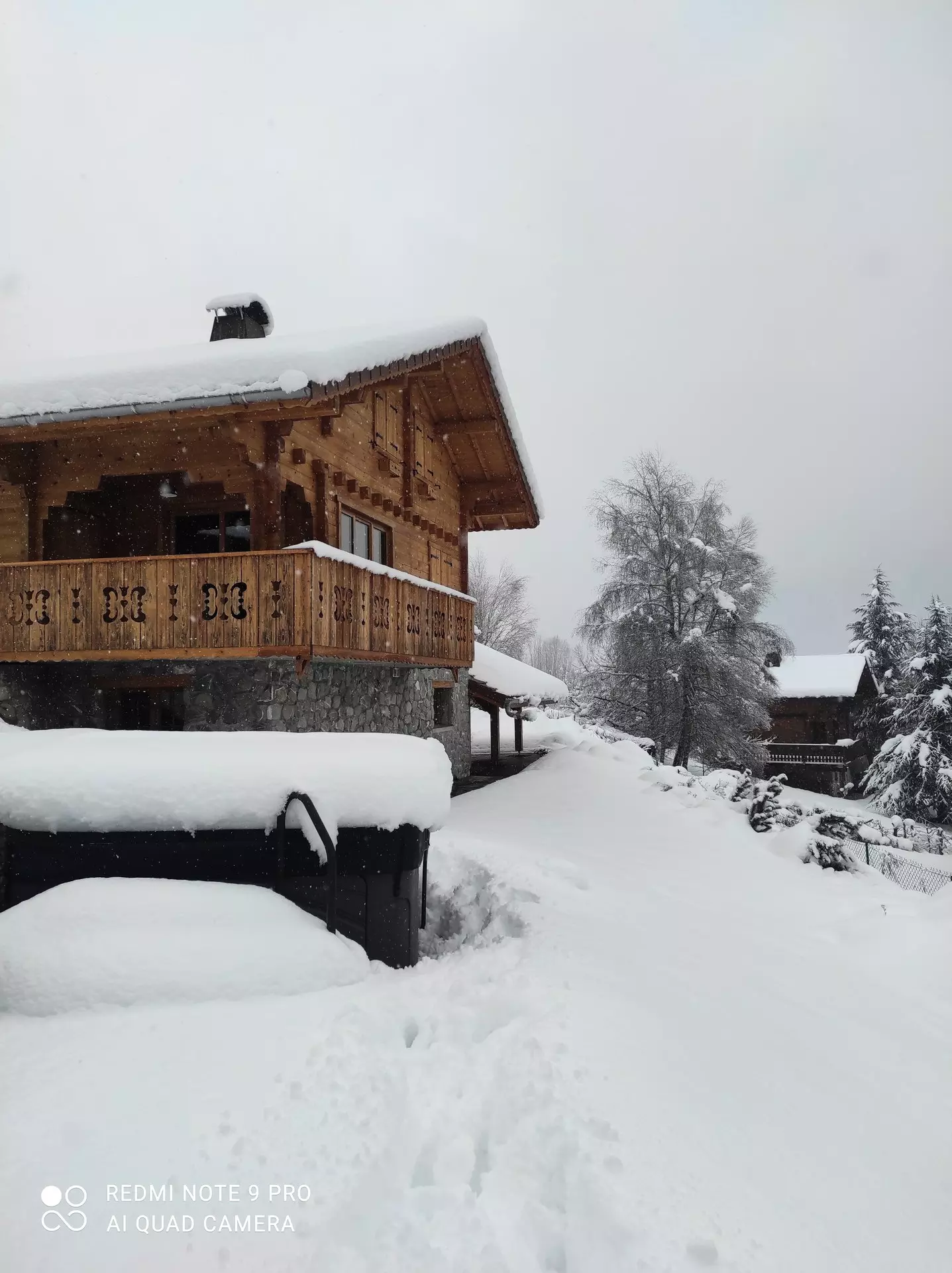Un abri voiture donne sur l'entrée du chalet au niveau du sous -sol, qui comprend :
